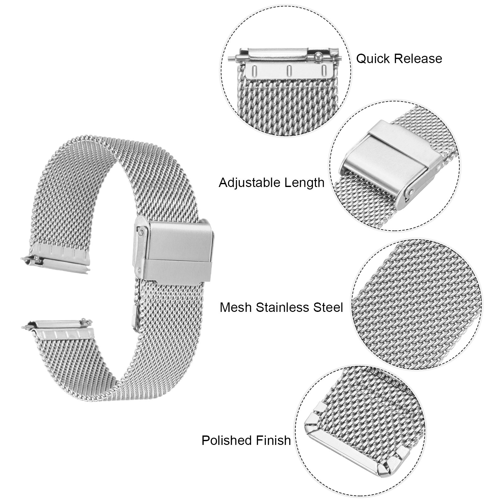 316L Stainless Steel Mesh Watch Band 21mm Quick Release Straps Silver