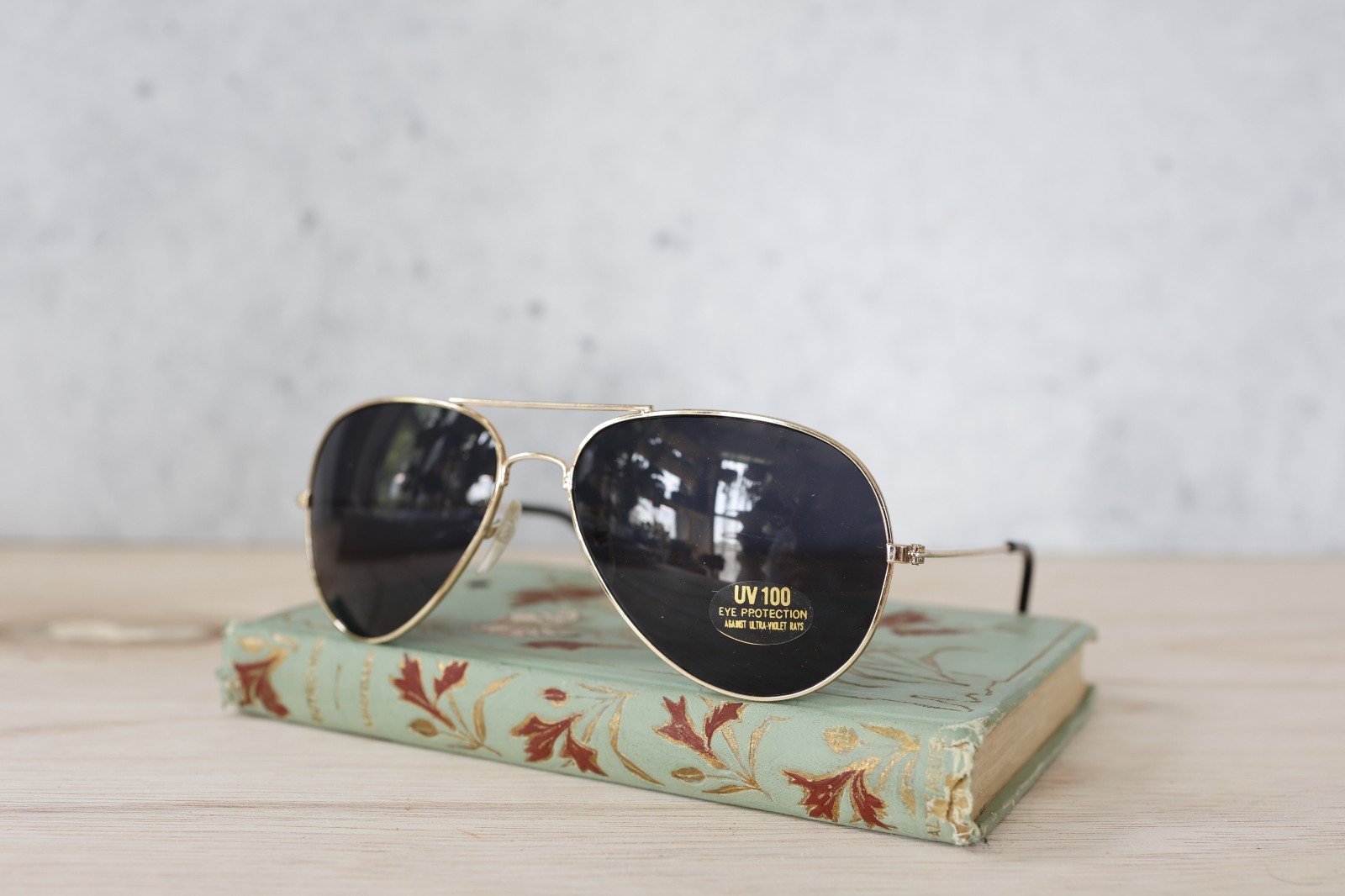 Vintage 1990s Sunglasses NOS Aviator Gold tone Dark lens Classic Cowboy Western