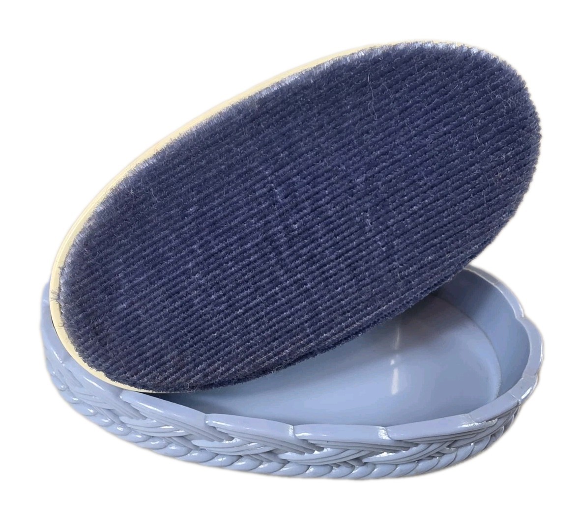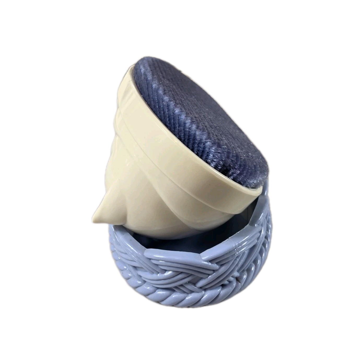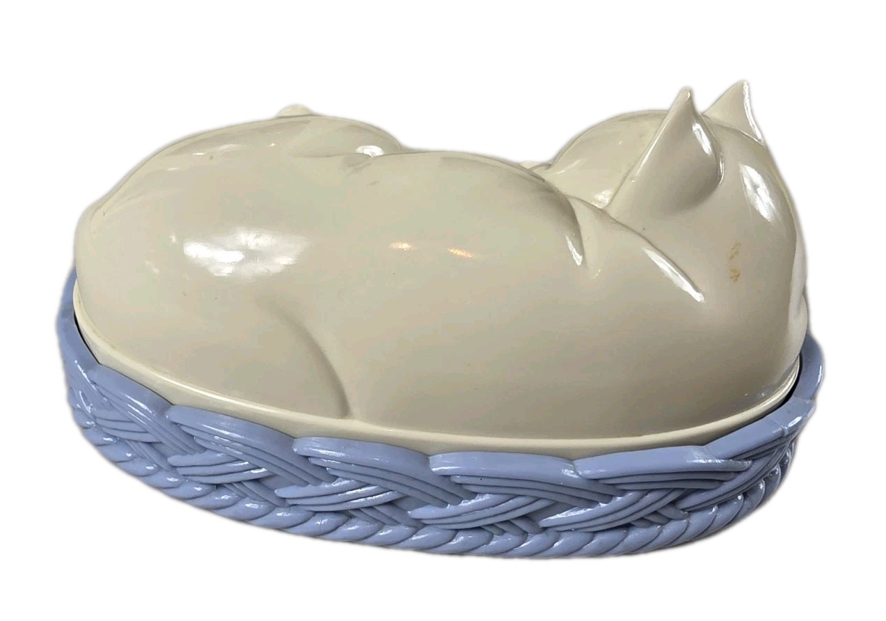 как выглядит Vintage 1970s Avon COZY KITTY Lint Brush White Sleeping Cat Blue Basket TR фото