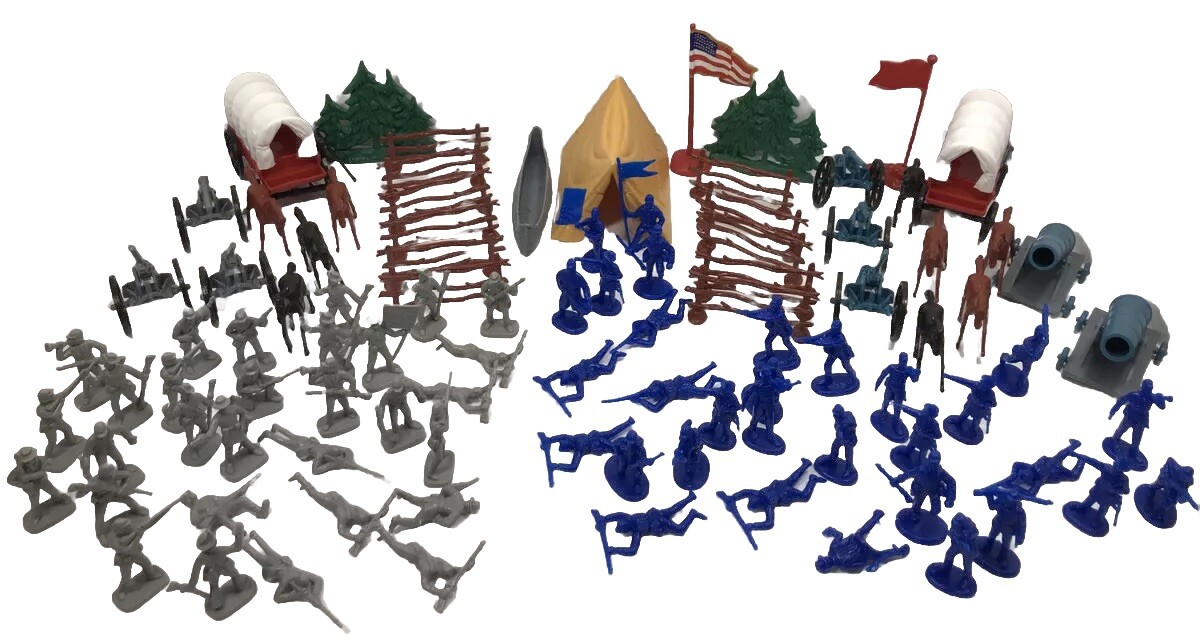 Toy Soldier Playset Flag Horse Fence Canon Tent Canoe Wagon Lot 98 Pieces
