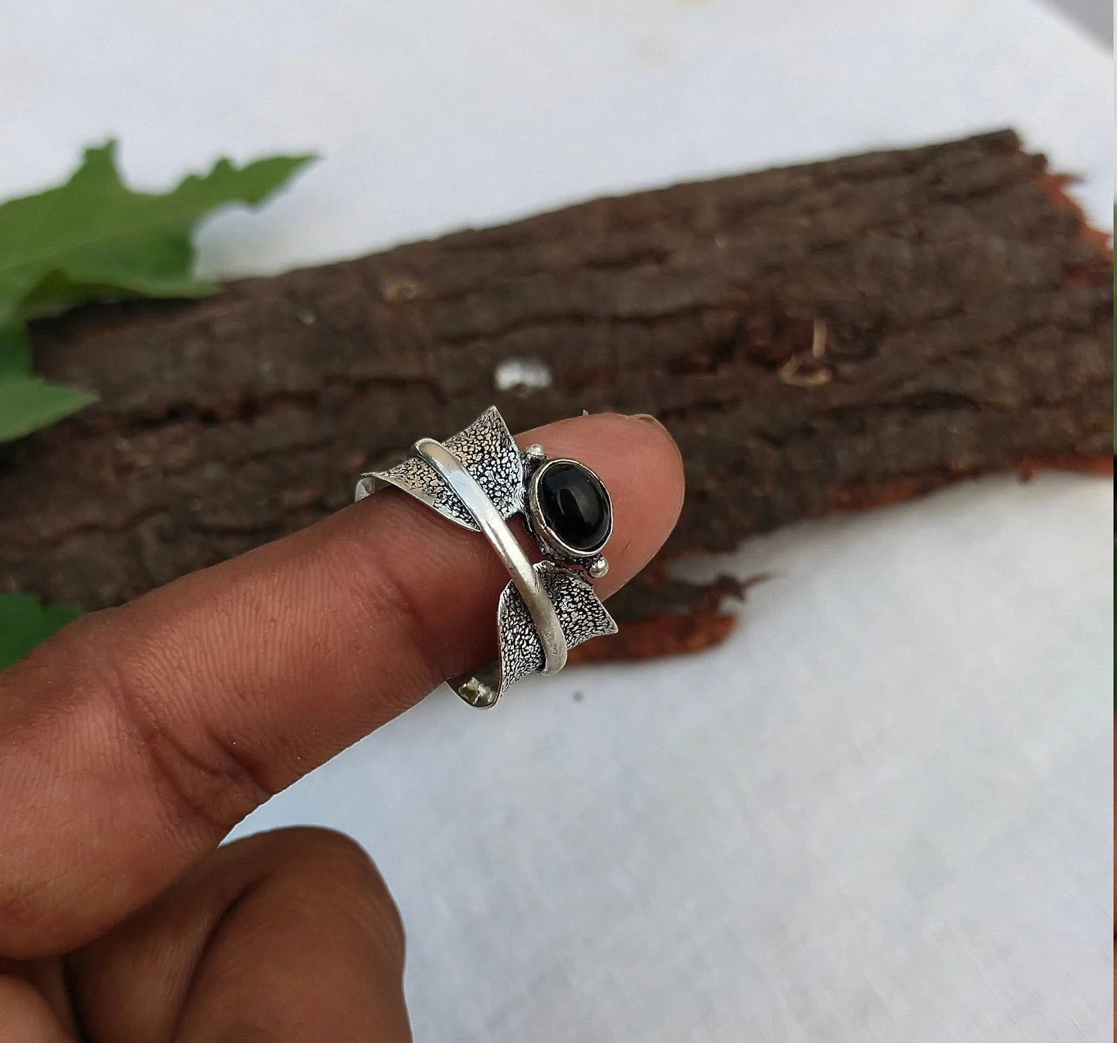 Natural Black Onyx Ring 925 Sterling Silver Handmade Ring Party Wear Ring