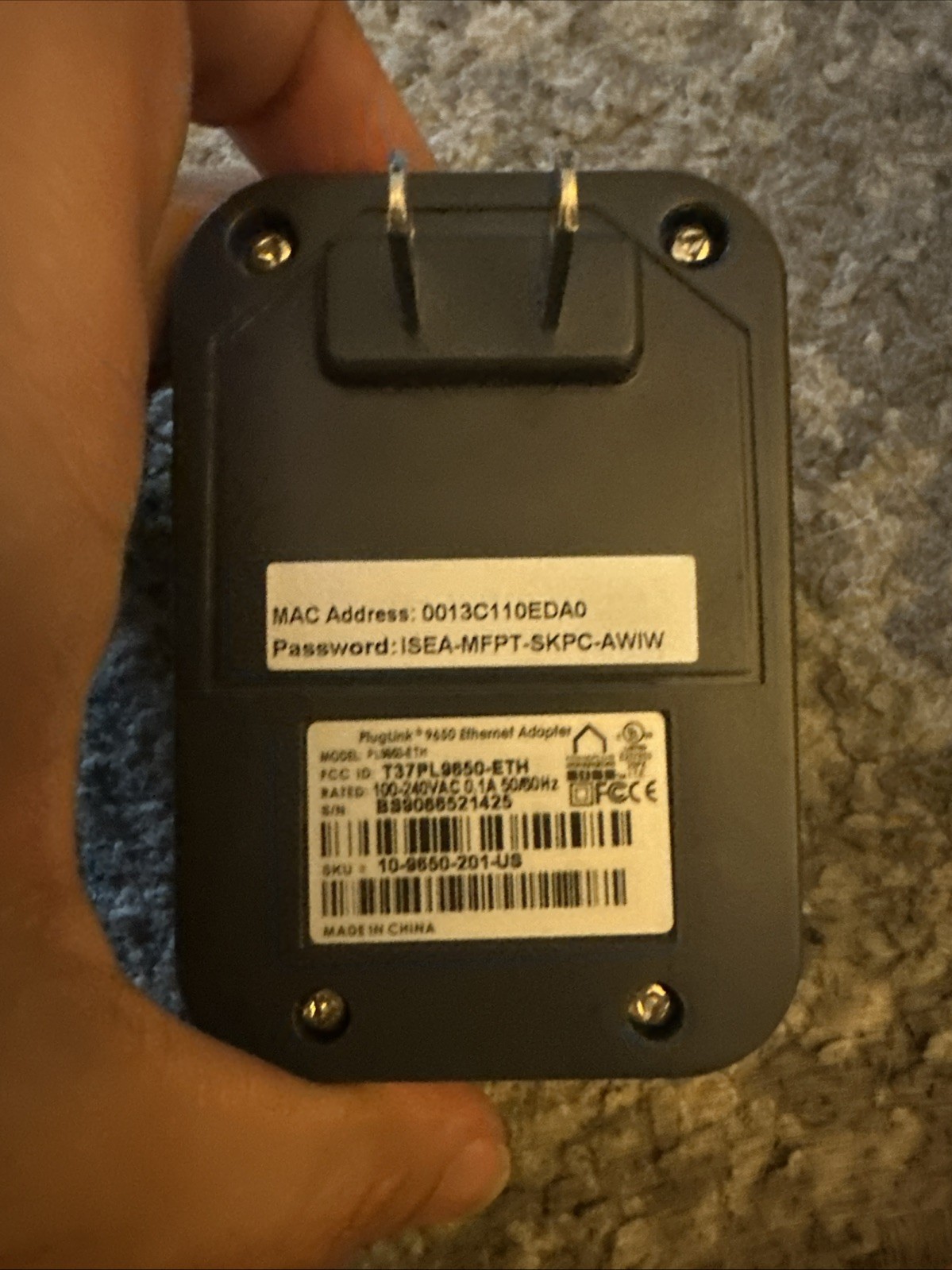 PlugLink by Asoka 9650 Ethernet Adapter Model: PL9650-ETH with Ethernet Cable M2