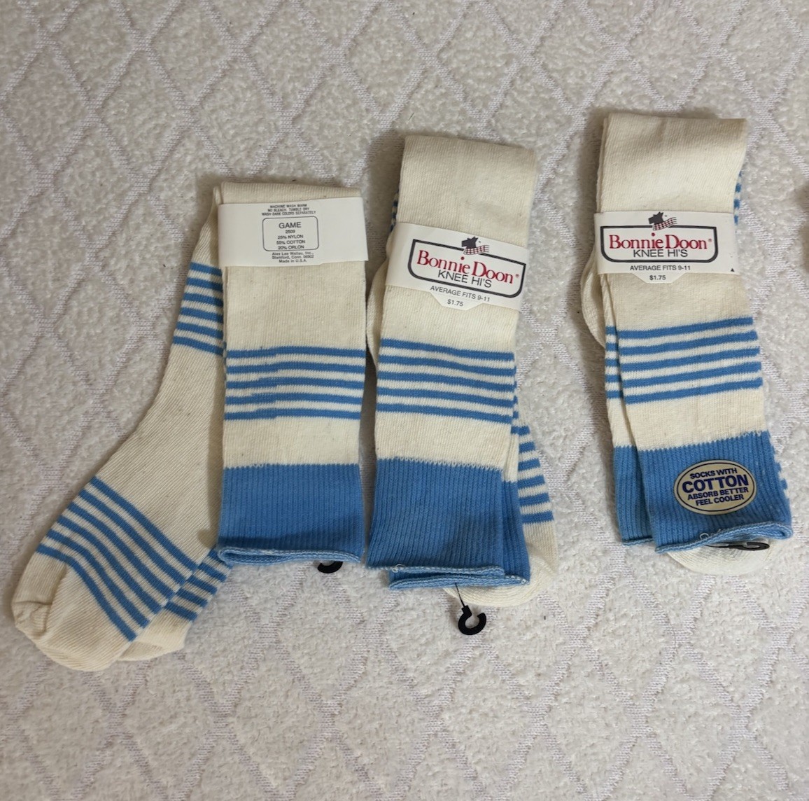 Lot Of 4 Vintage Bonnie Doon Knee Hi s Striped Socks USA Made Size 9 To 11