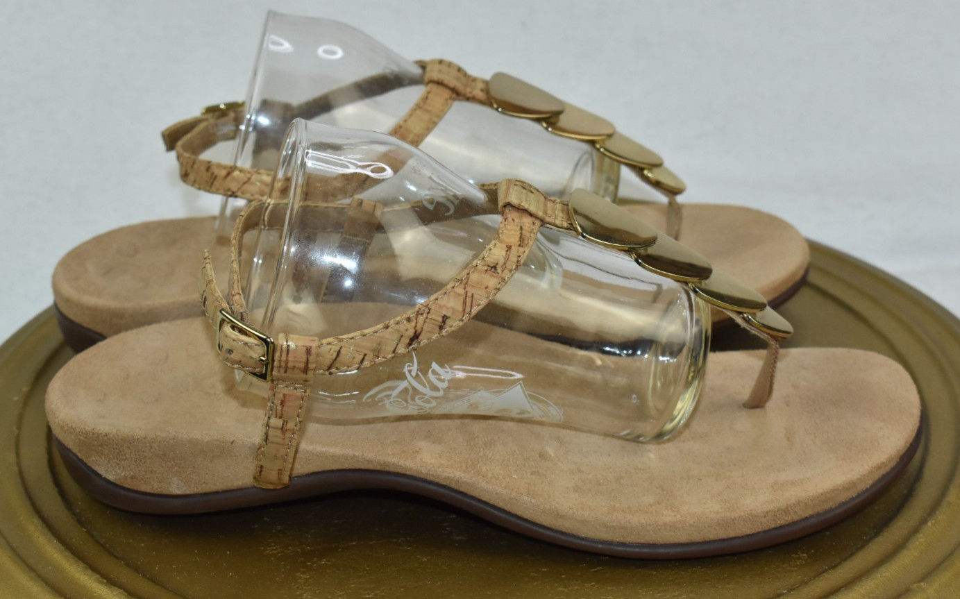 Vionic Miami Women's Sandals Size 8 Gold Tone Metallic Embellished Thong T Strap