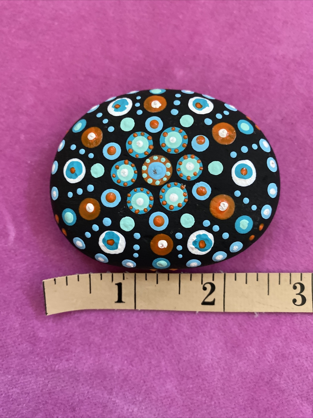 • Natural Stone Mandala Dot Painting, Hand-Painted Acrylic on Rock 2