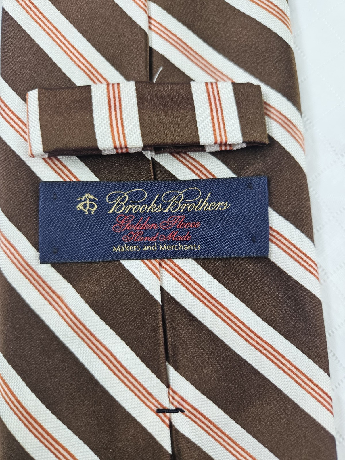 как выглядит Vtg Brooks Brothers Makers Merchants 100 Italian Silk Tie Men Brown Stripe фото