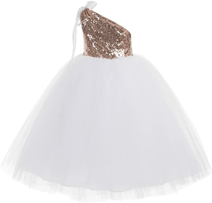 ekidsbridal One-Shoulder Sequin Tutu Wedding Dress Pink/White Size 2