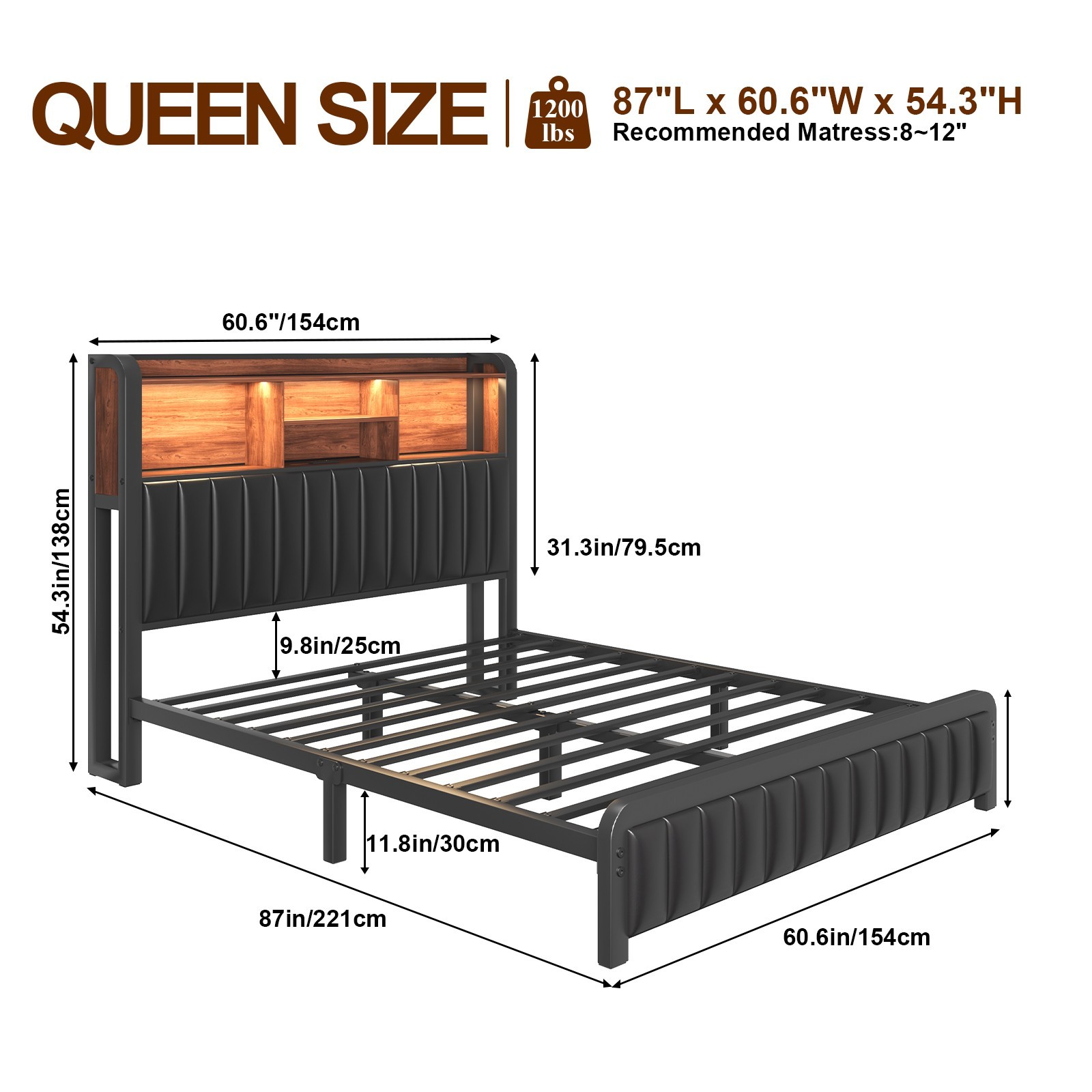 Compatible Mattress Size: Full, Queen