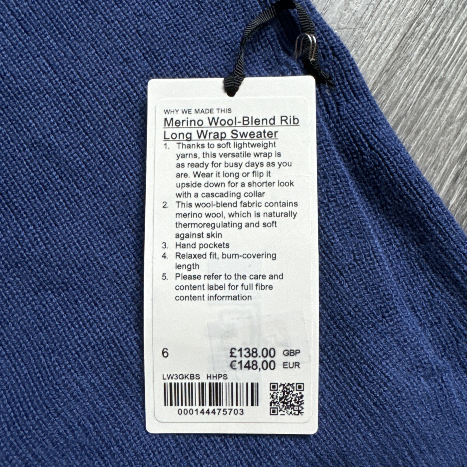 как выглядит Lululemon Merino Wool-Blend Ribbed Long Wrap Sweater, NWT, Size 6 фото