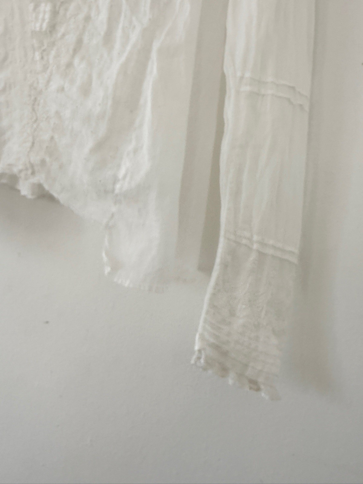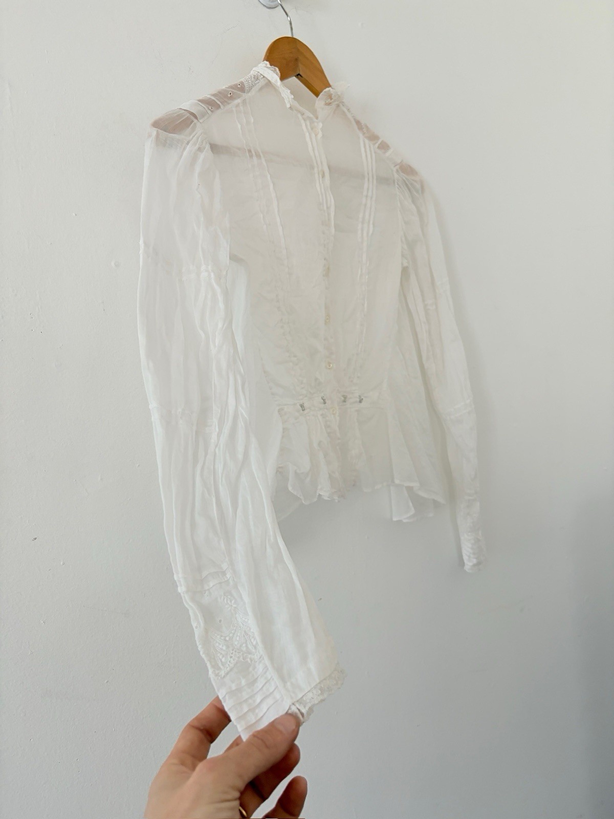 как выглядит Antique Edwardian Sheer White Cotton Voile Bodice/Blouse Embroidered Lace XS S фото
