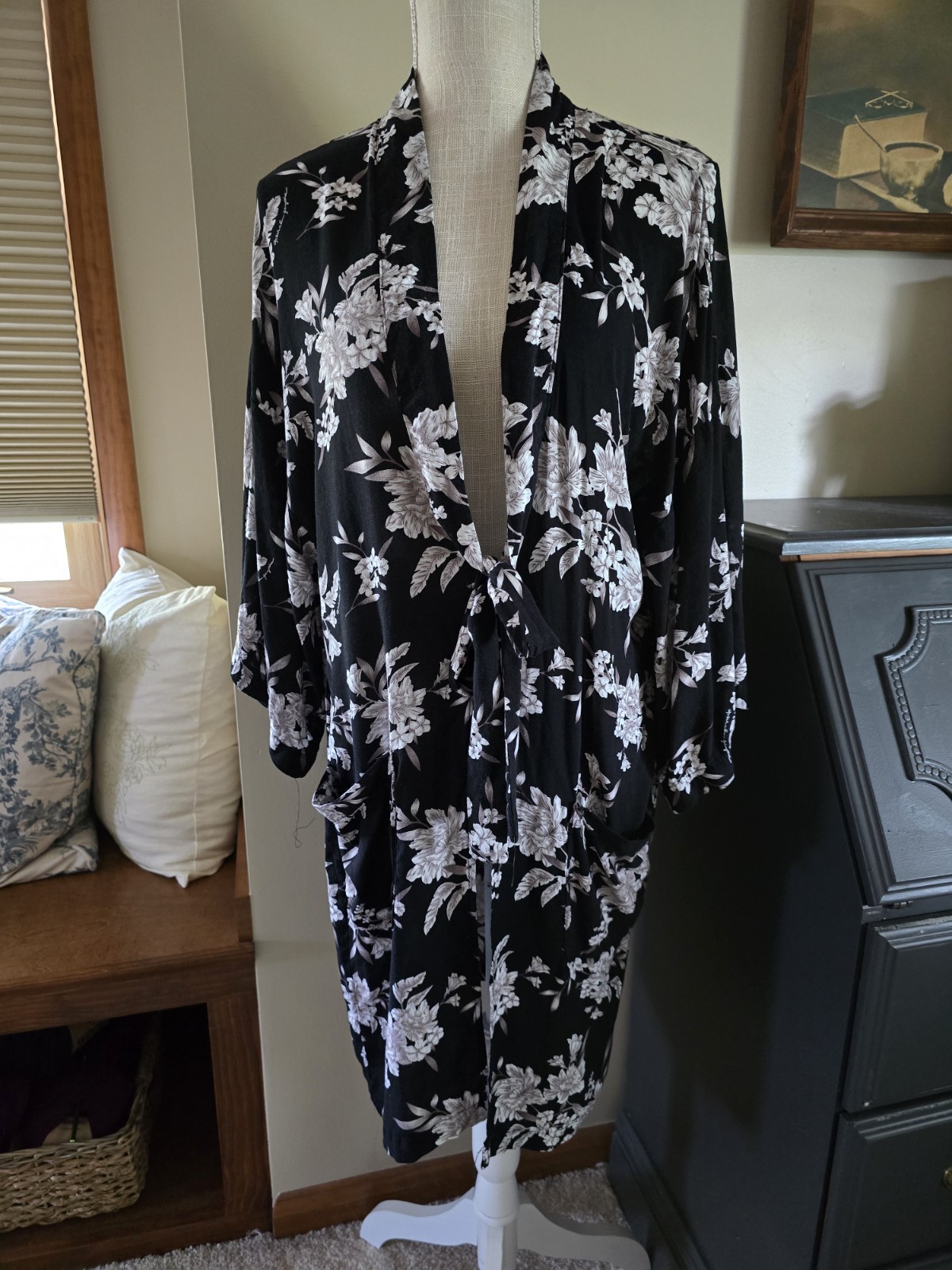 Spiritual Gangster Womens One Size Floral Black Tie Kimono Robe Duster Boho
