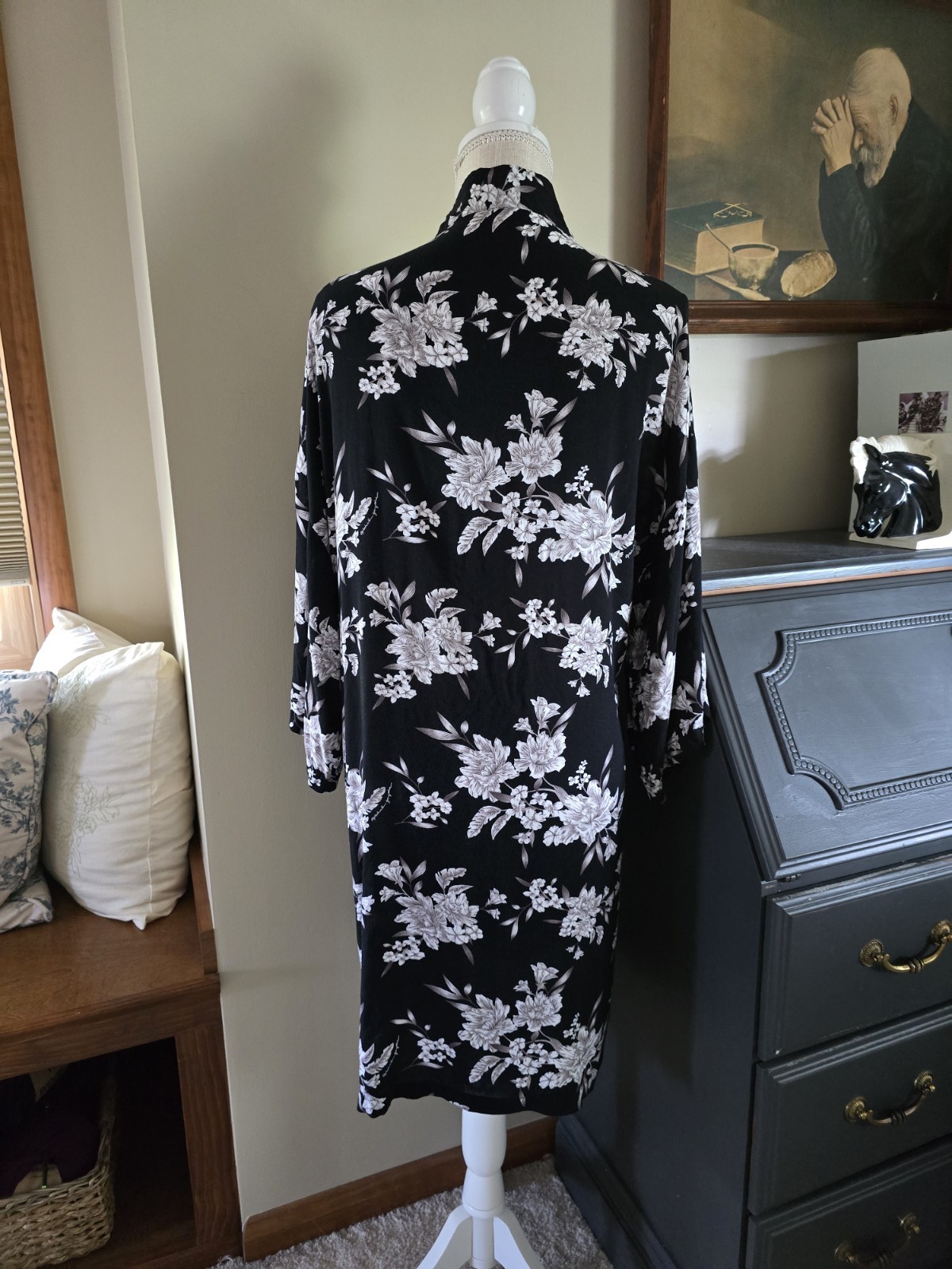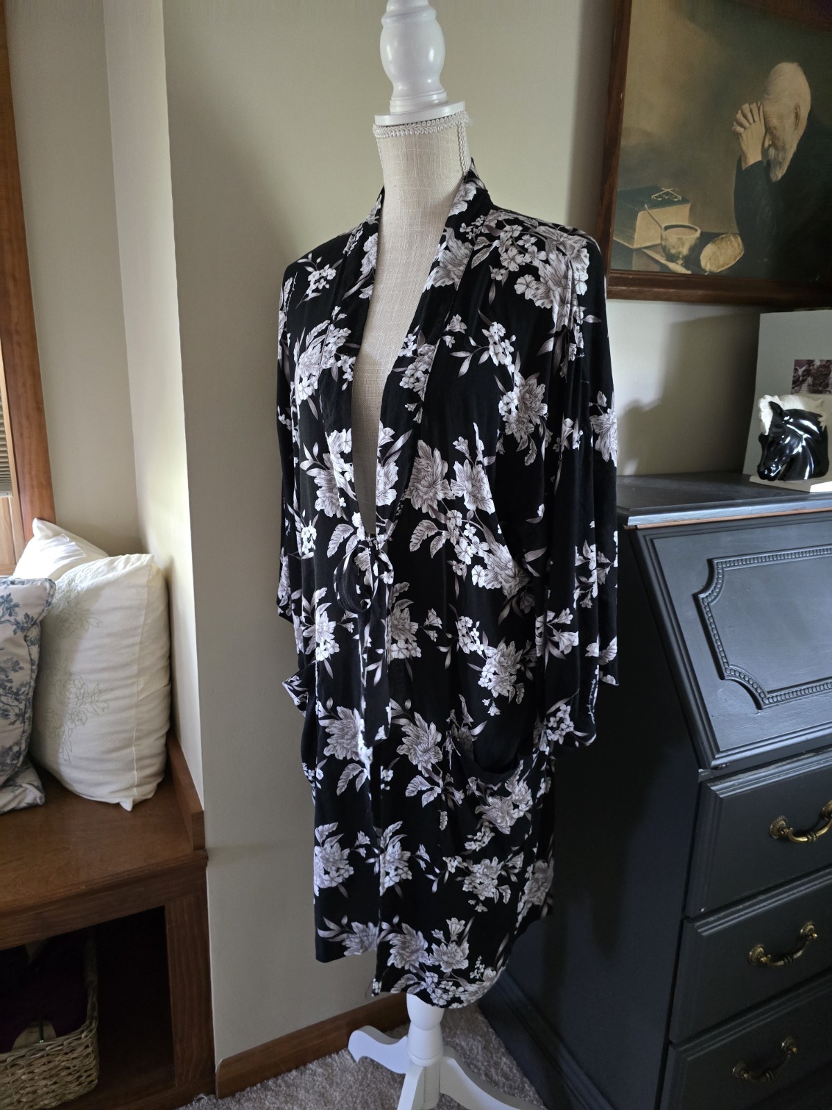 как выглядит Spiritual Gangster Womens One Size Floral Black Tie Kimono Robe Duster Boho фото