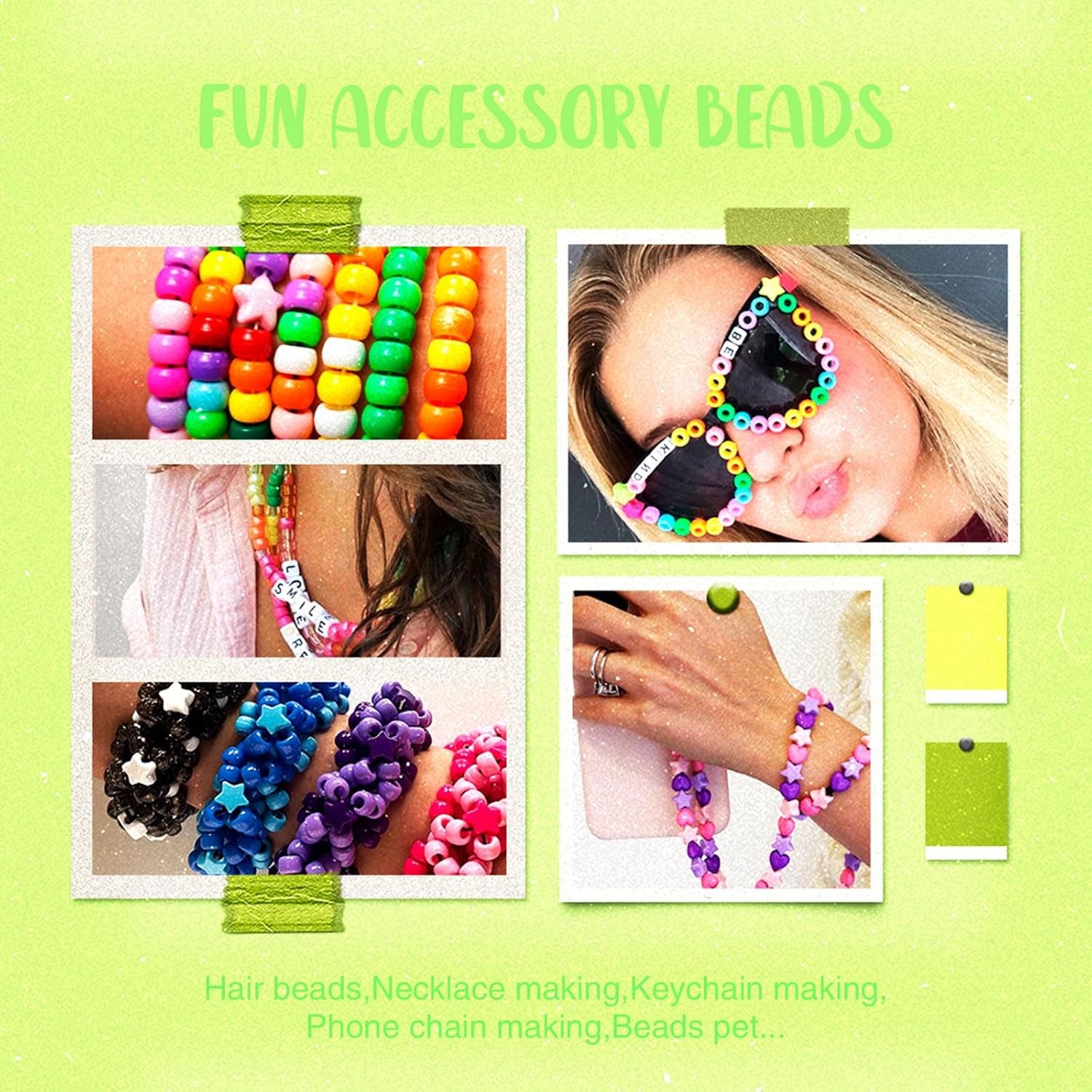 1000 PCS Pony Beads Assorted for Bracelets, MultiShapes Surprise Blend