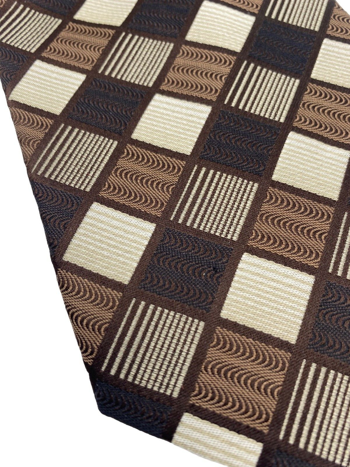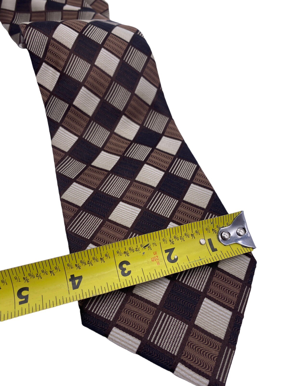Stafford Tie NEW Silk Brown Plaid Check Textured Woven 4 Disco Vintage Style