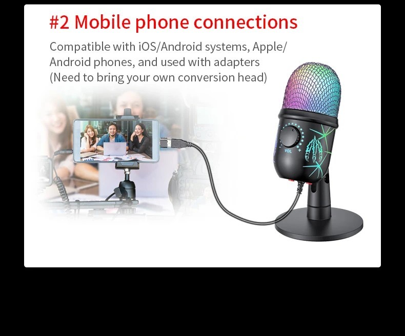 USB Microphone Play Gaming Mic for PC Mac PS4/5 Podcast Microphone with RGB Mute