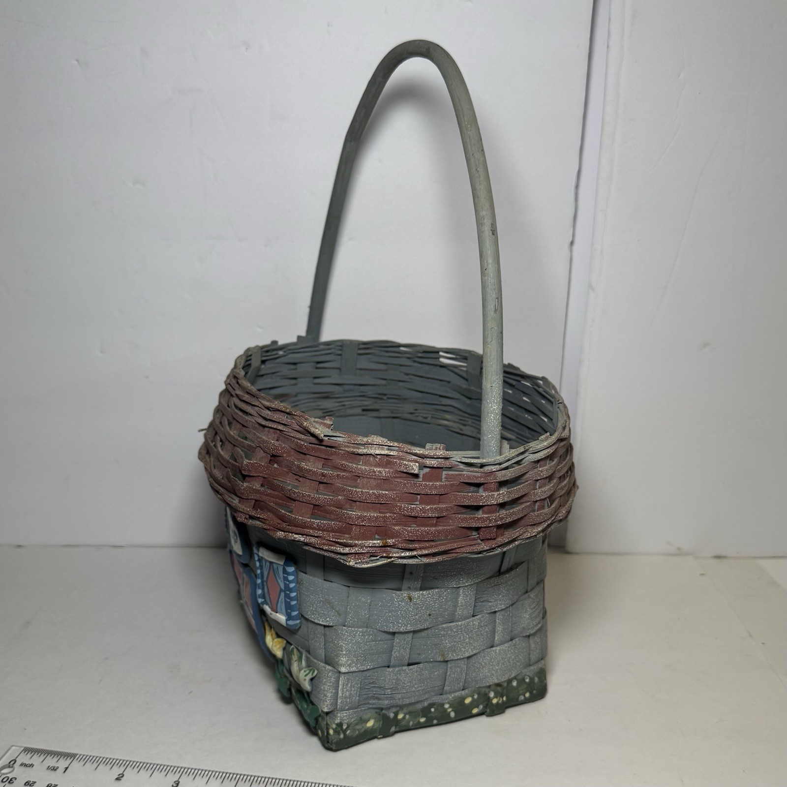 как выглядит Vintage Hand Painted 1960s Caro Nan Wood Woven Basket Purse Basket w Handle фото