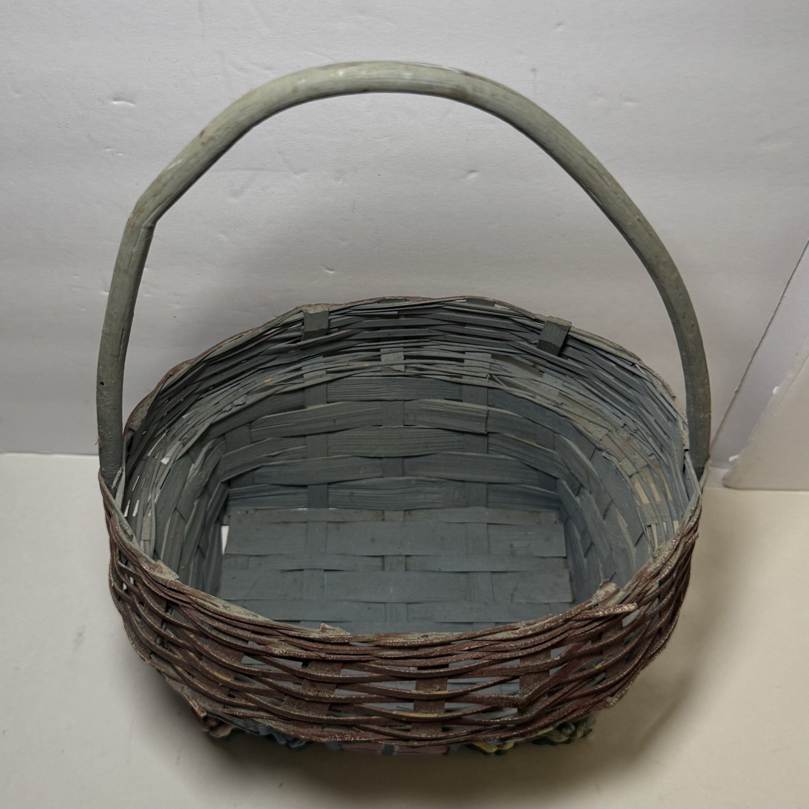Vintage Hand Painted 1960's Caro Nan Wood Woven Basket Purse Basket w Handle