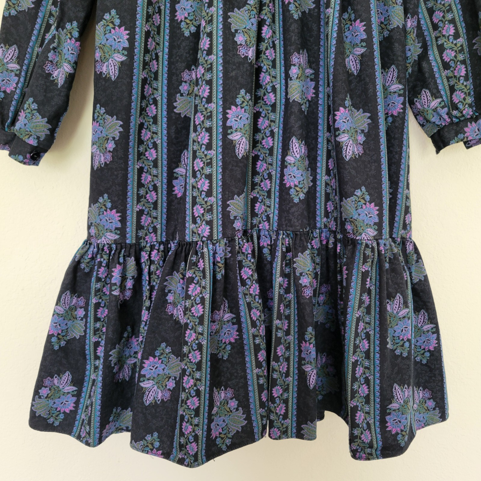 Vtg Tracy Sue Girls Prairie Dress Sz 7-9 Years Tiered Floral Cottage Boho 70s