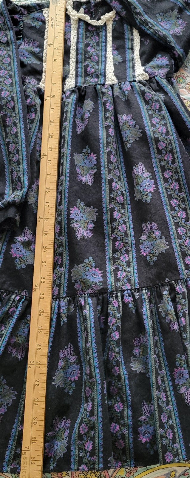 как выглядит Vtg Tracy Sue Girls Prairie Dress Sz 7-9 Years Tiered Floral Cottage Boho 70s фото
