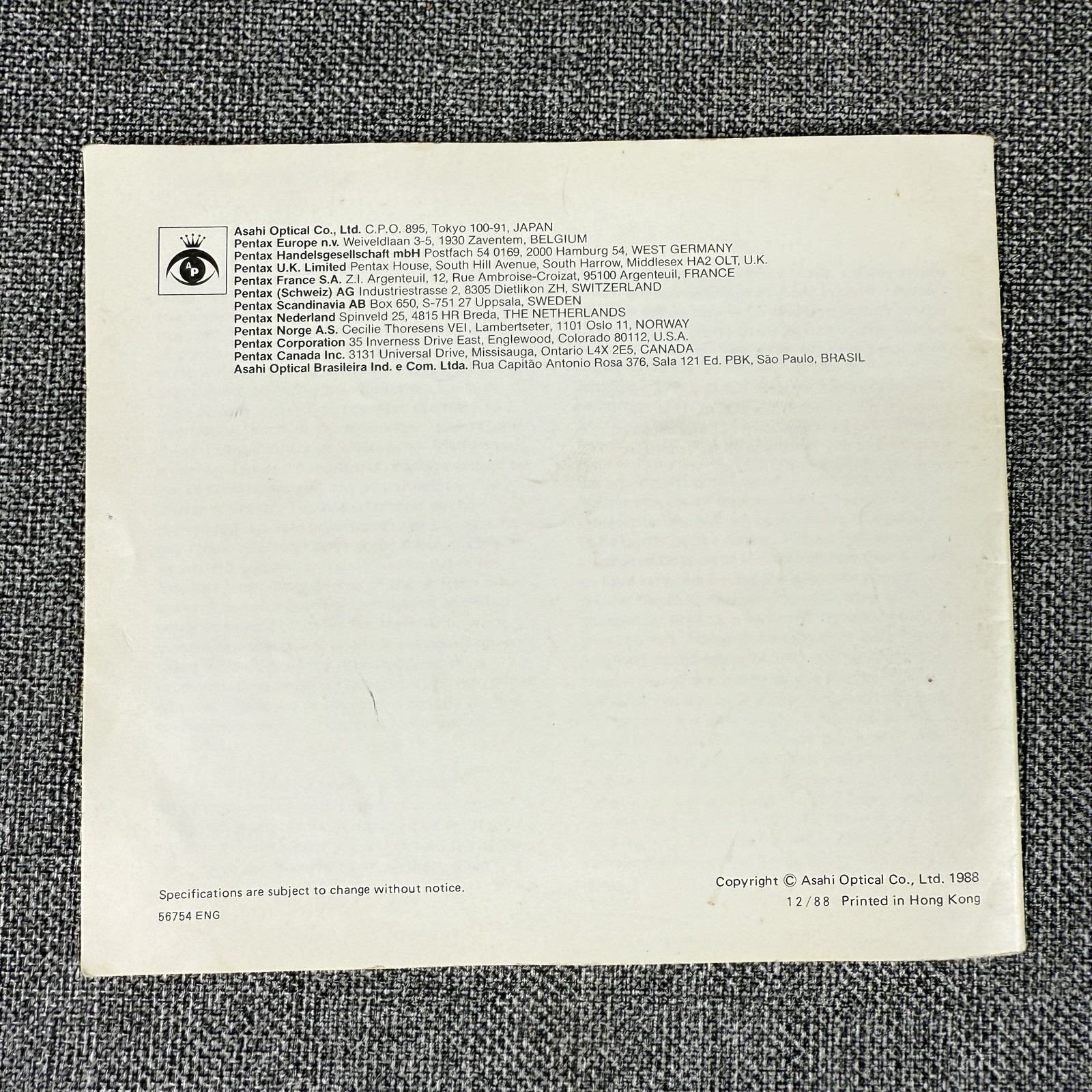 Pentax K1000 Original Film Camera Instruction Manual, 32 pages