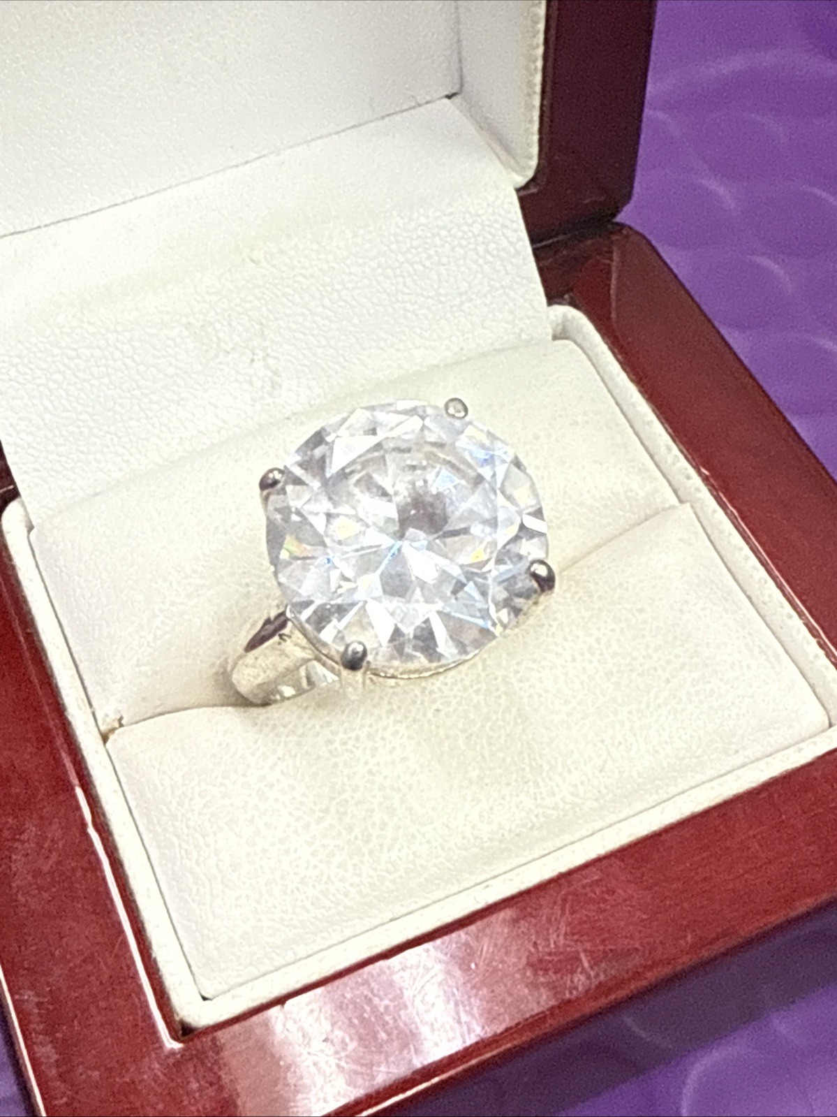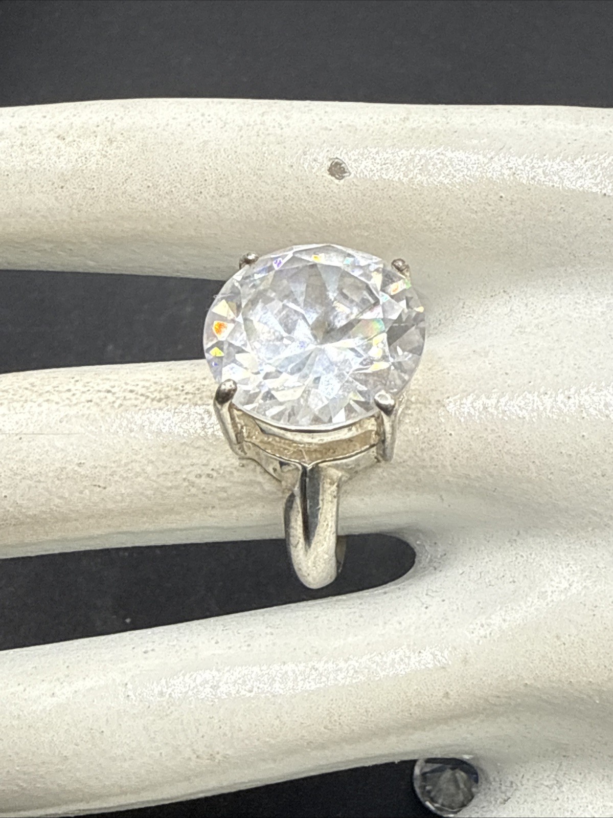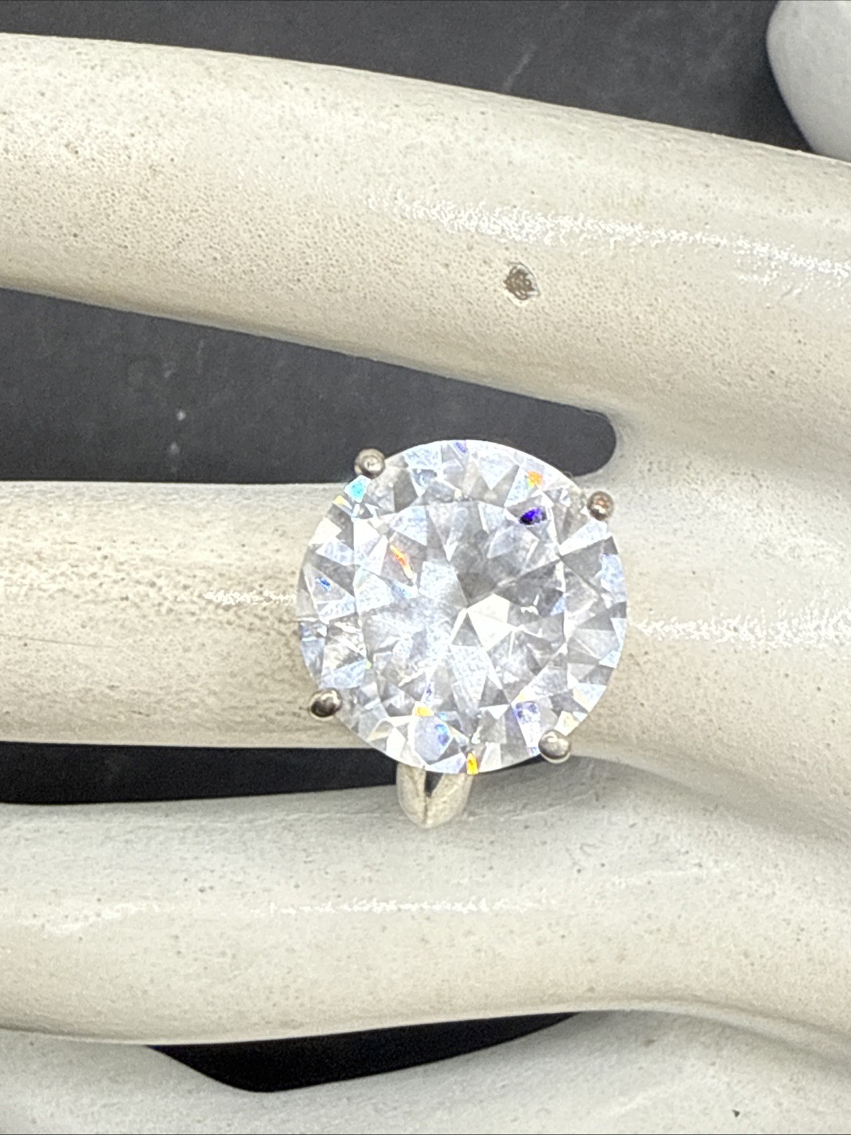 как выглядит Sterling Silver Round Cut 12CT Cubic Zirconia Solitaire Engagement Ring 2 фото