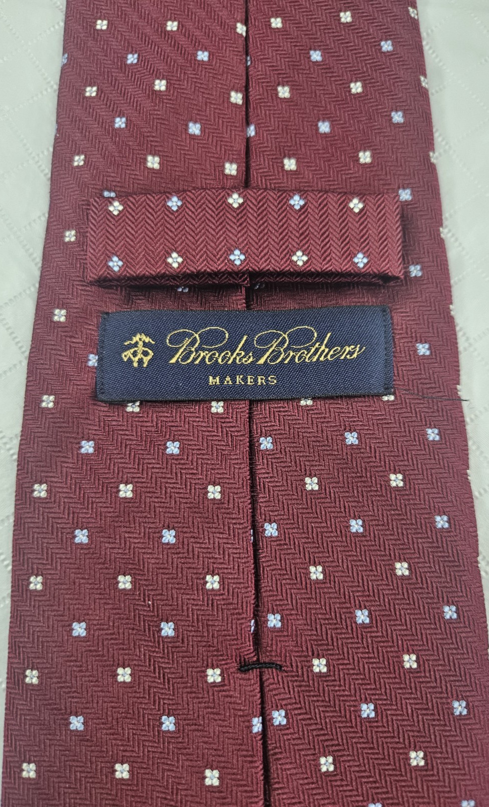 Vtg Brooks Brothers Makers 100 Silk Tie Men Maroon Blue White Dot Print USA