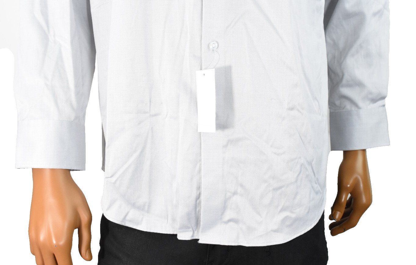 Calvin Klein Mens Dress Shirt L 16 34/35 New Gray Refined Cotton Slim Fit