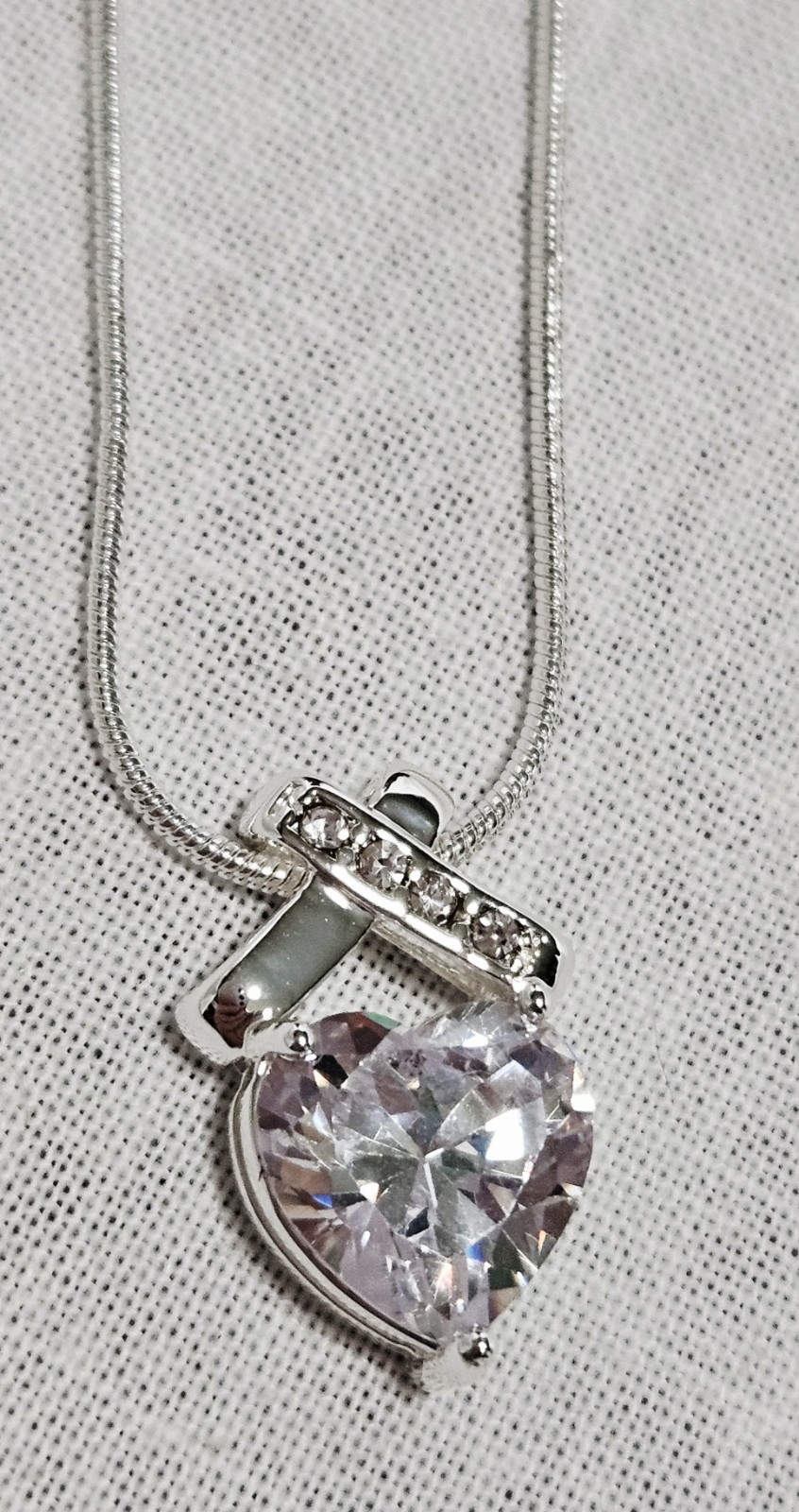 как выглядит Silver Tone Necklace With Heart Pendant Made With Swarovski Crystals J14-3417 фото