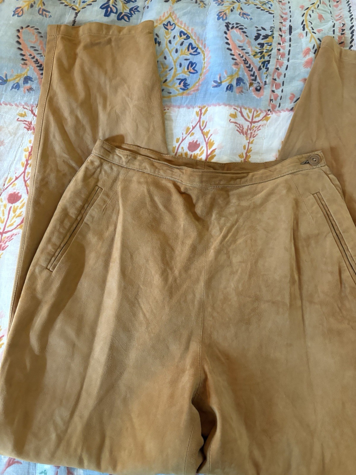 как выглядит Vintage 1980s Leather Suede High Waisted Tan Pants Made In Italy фото