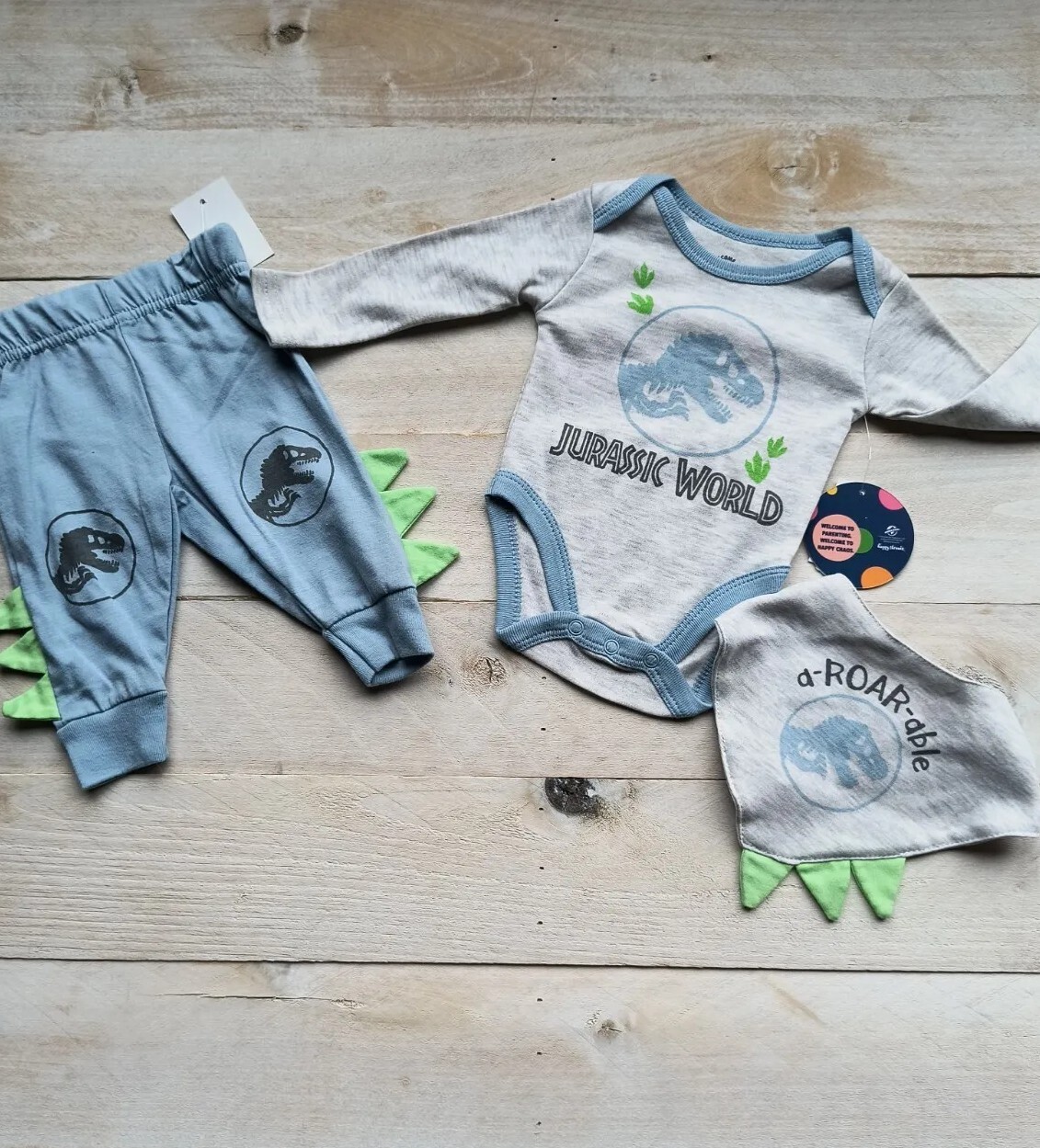 как выглядит NWT Jurassic World Universal Baby 3pc Set Pants Shirt Bib Size 0-3 Months фото