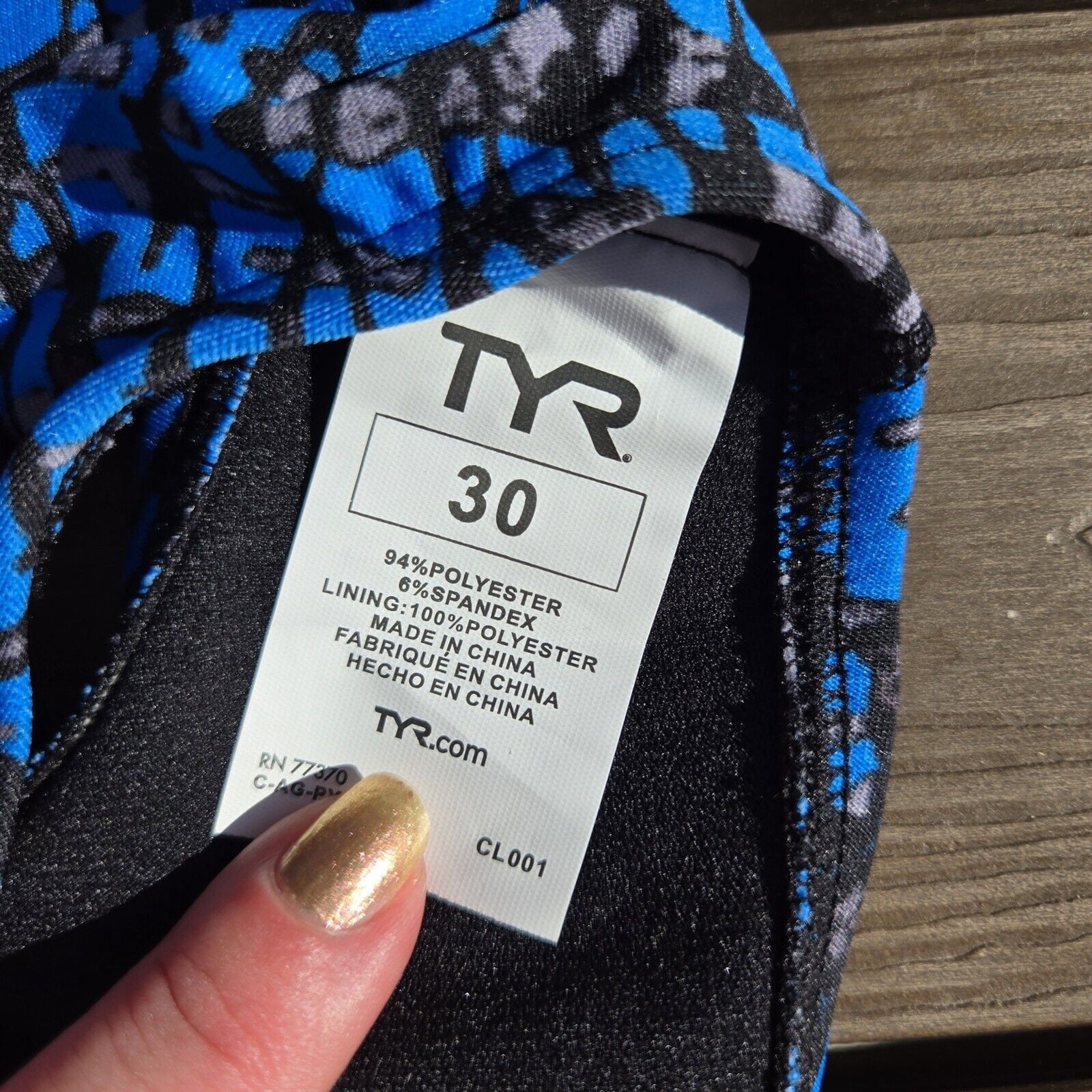 TYR Durafast One Women Cutoutfit Petra Blue/gray 1 Piece Swimsuit SZ 30 New