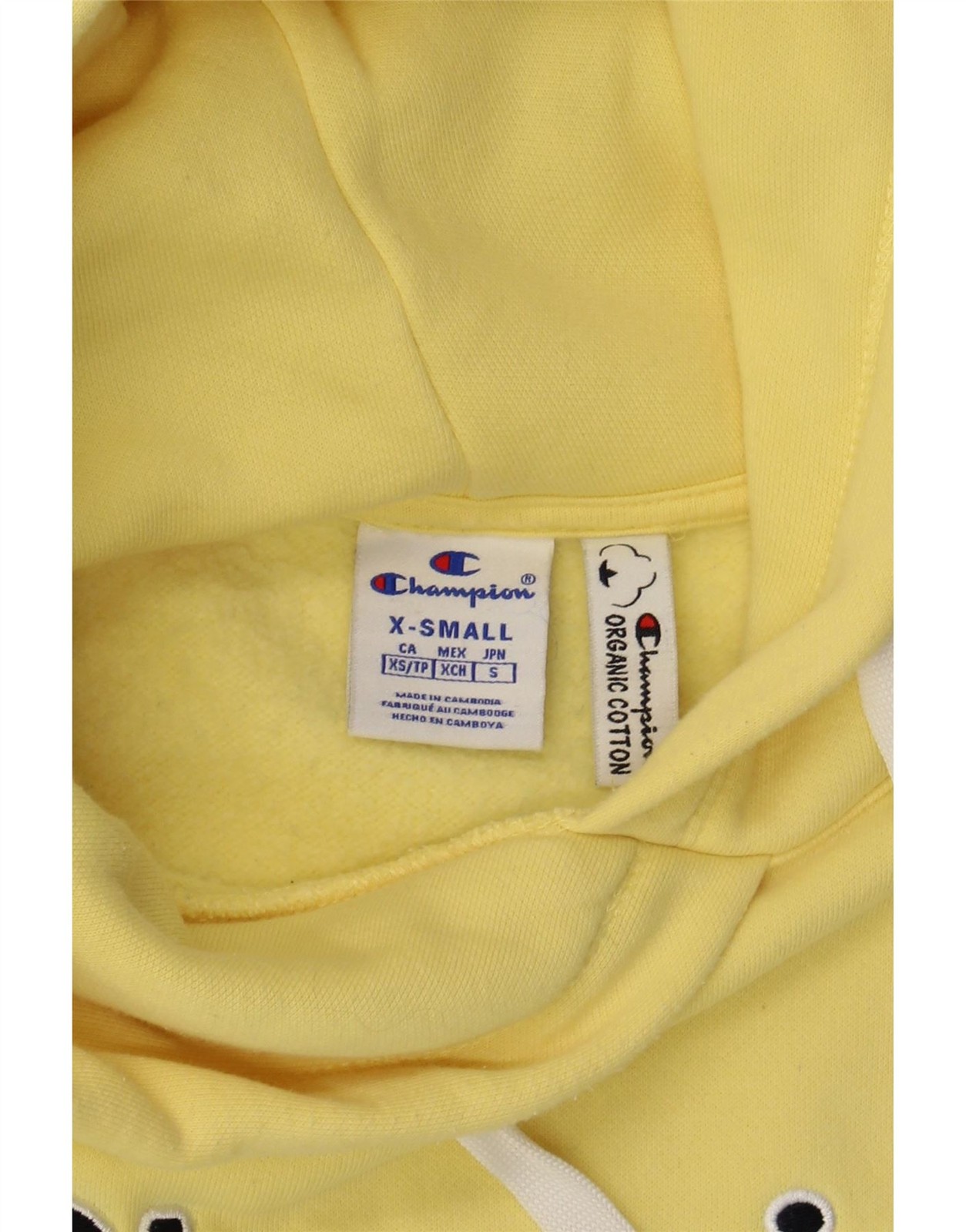 CHAMPION Womens Graphic Oversized Hoodie Jumper UK 6 XS Yellow Cotton DF36