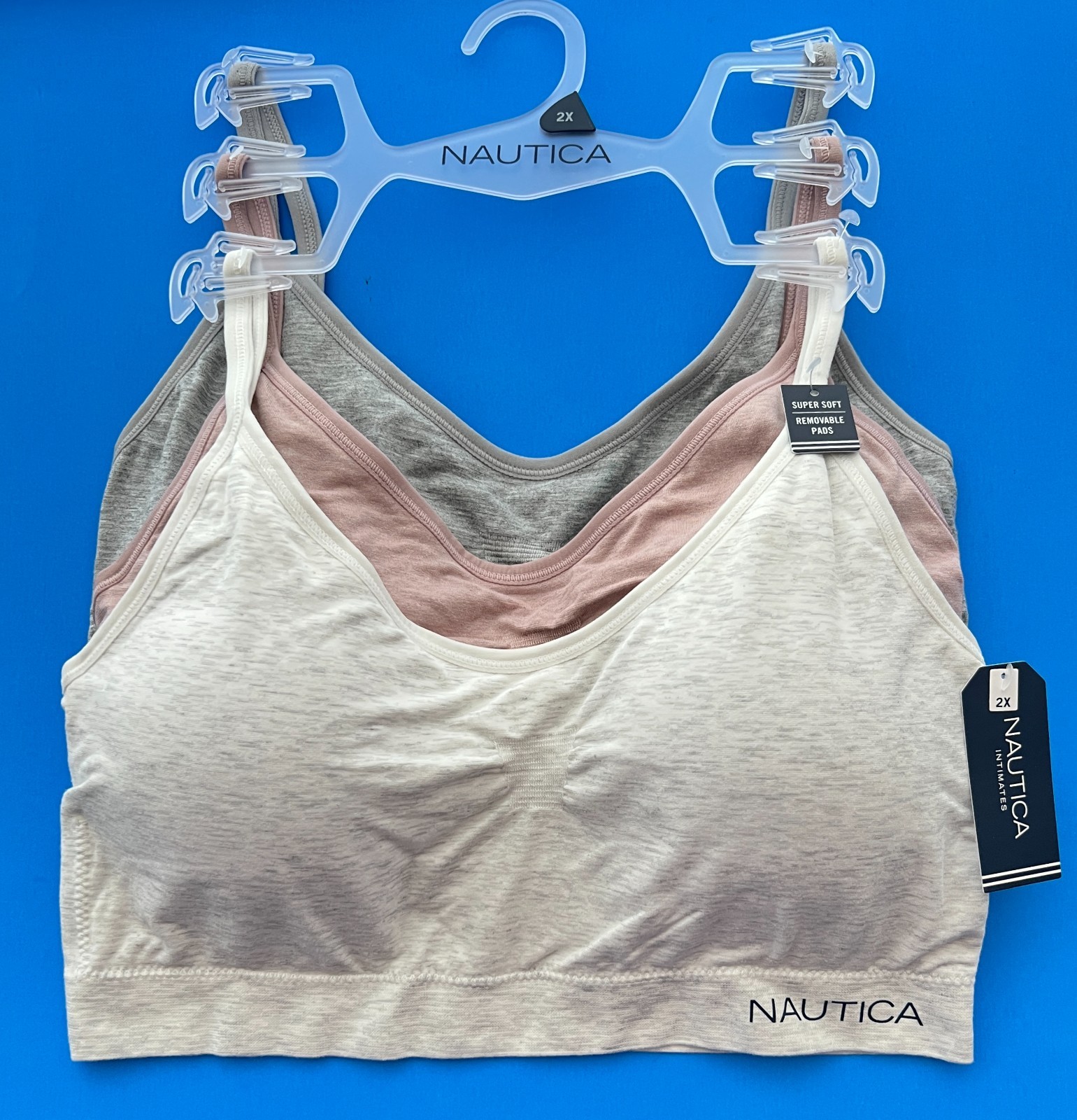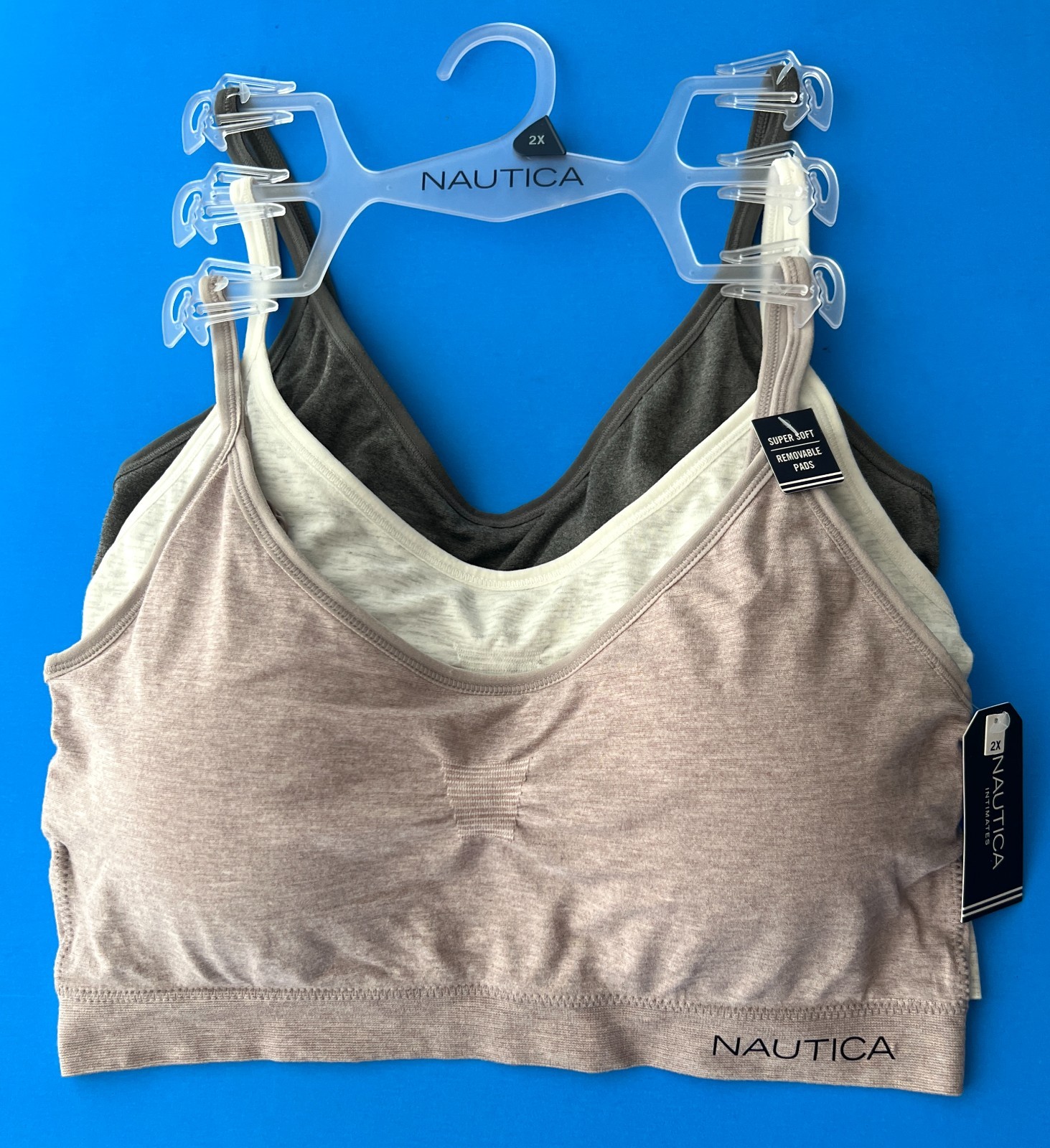 NEW IN NAUTICA 3 PK BRAS 1X,2X,3X NT6907 SUPER SOFT LOUNGE COMFORT SEAMLESS NWT