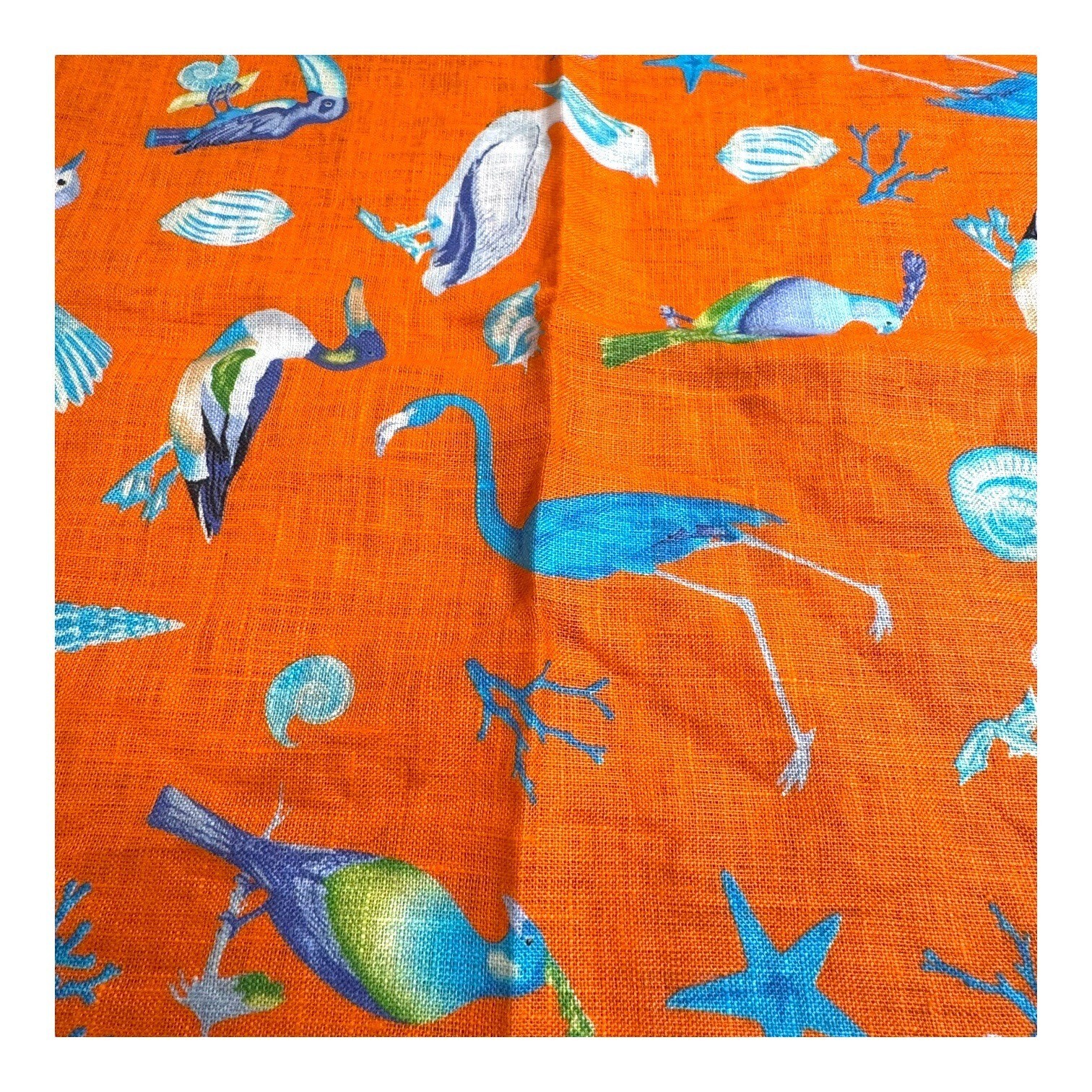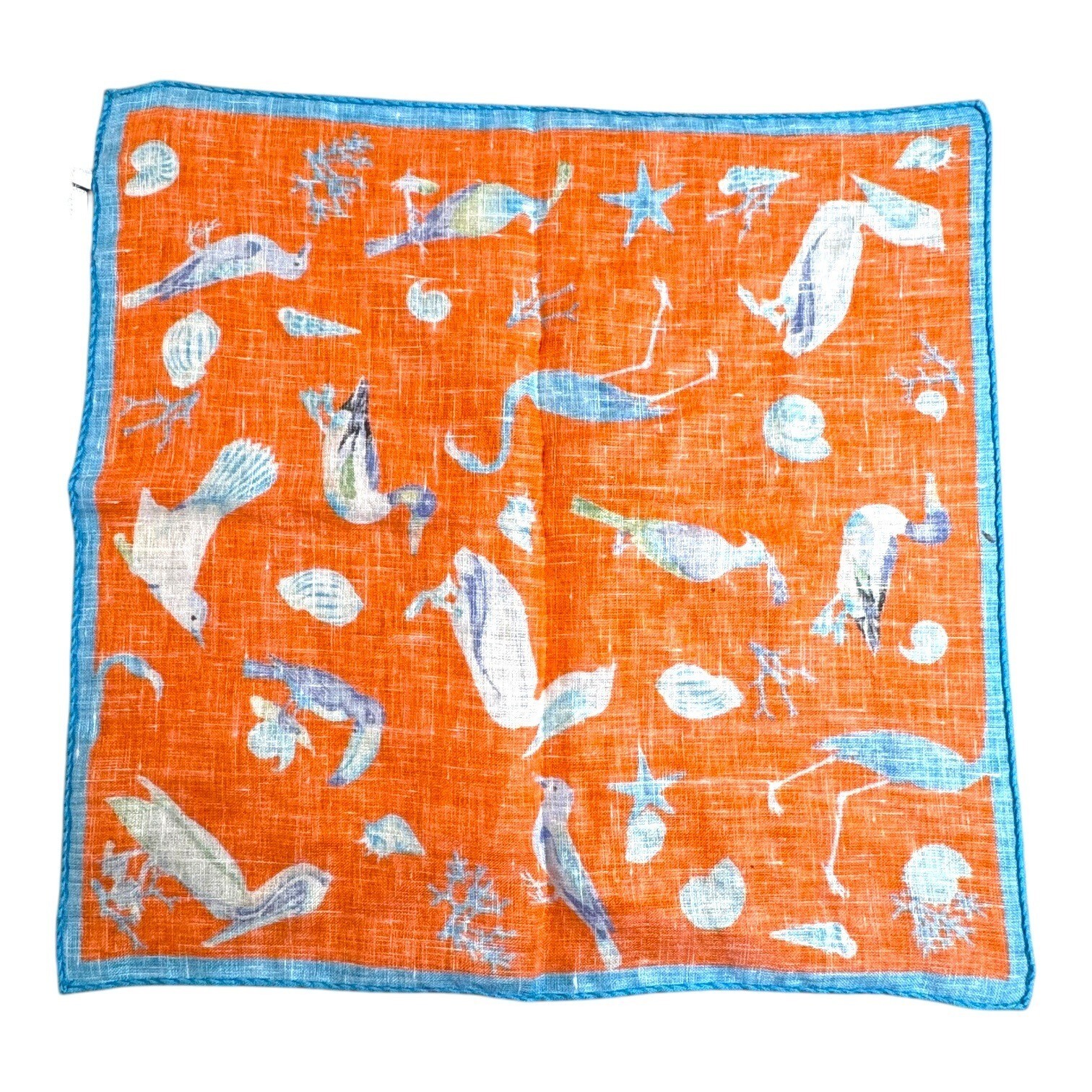 Rare Peter Millar Tropical Bird Linen Pocket Square Handkerchief Scarf Orange