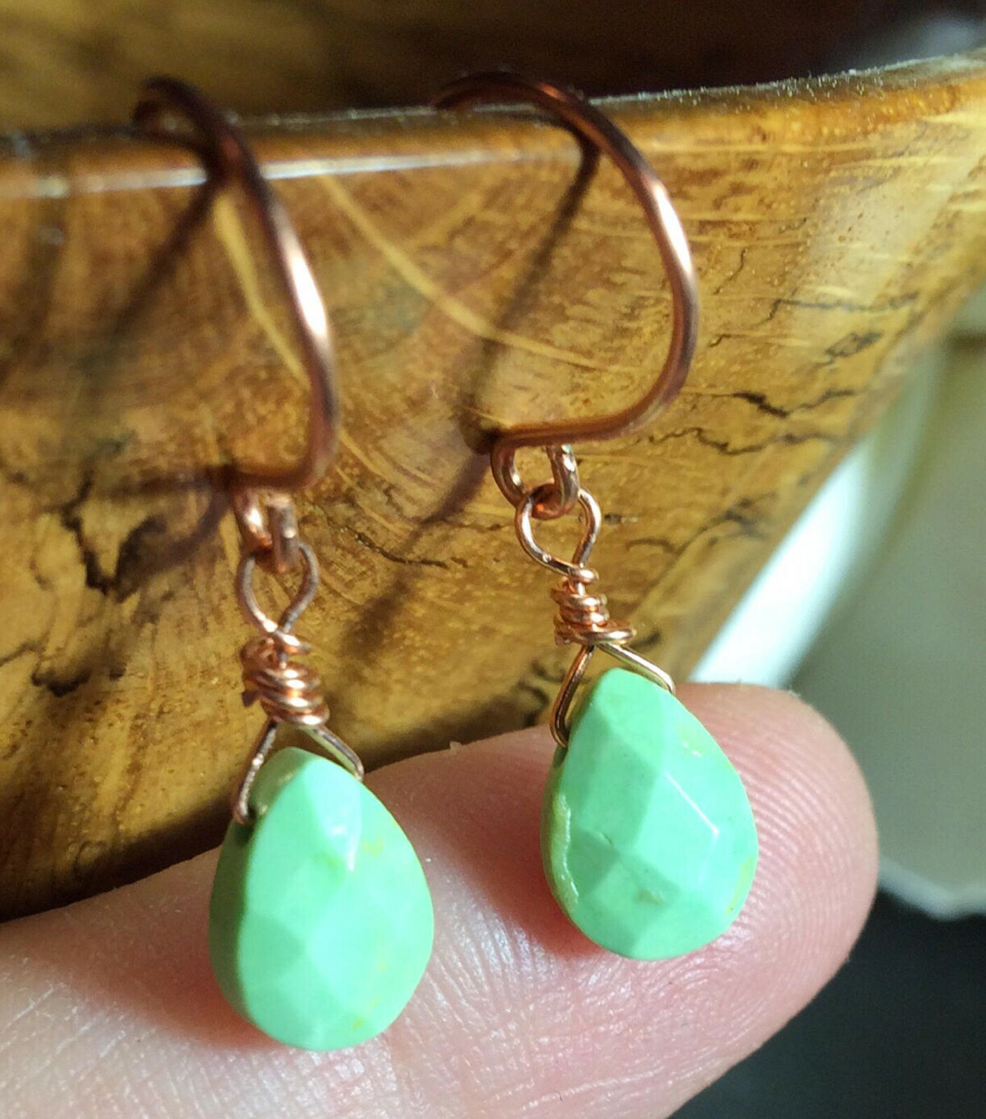Faceted Green Turquoise Teardrop Pure Solid Copper Earrings Sundance Artisan