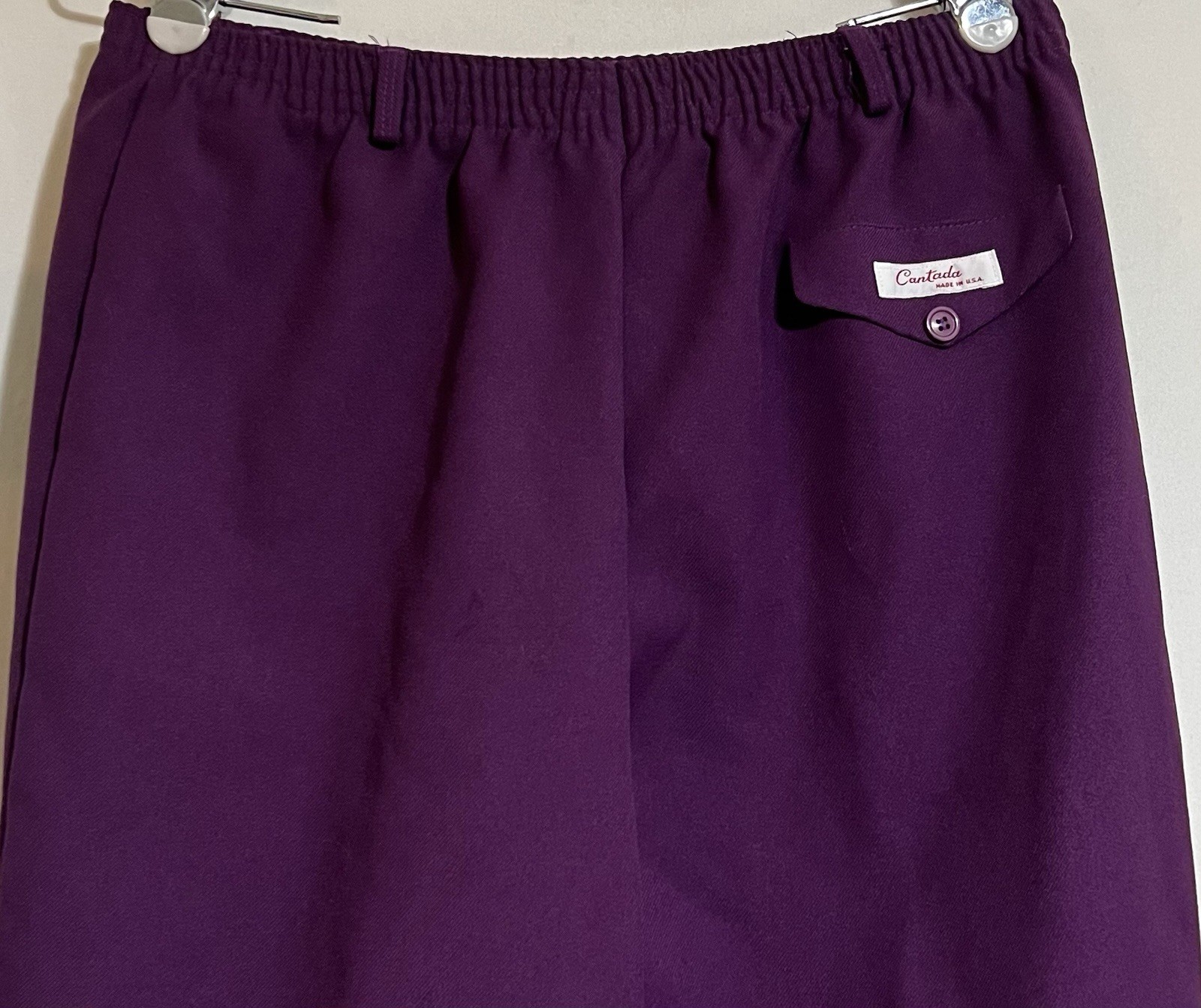 Vintage polyester Dress pants trousers elastic waist purple button 70s Pocket P