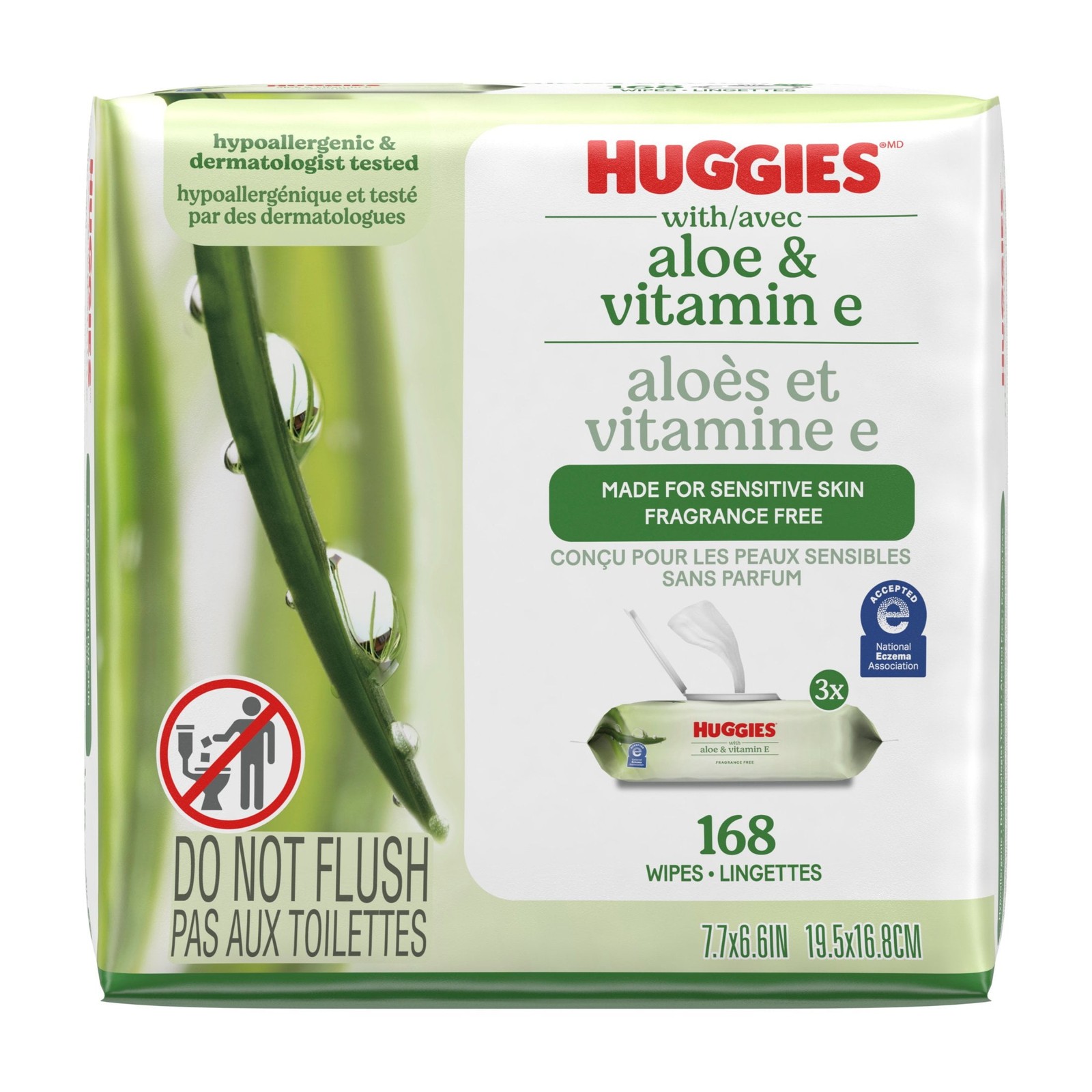 Huggies Wipes with Aloe Vitamin E, Unscented, 3 Flip-Top Packs
