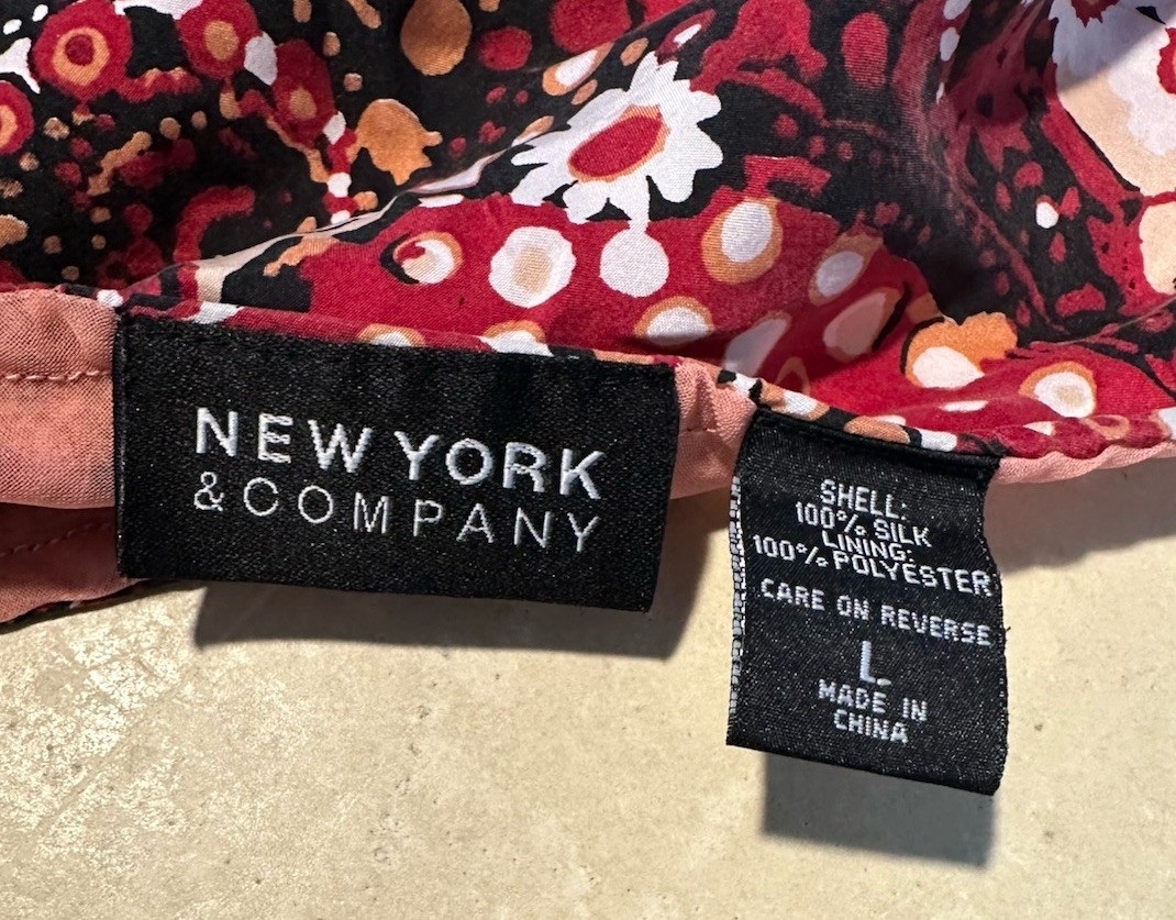 как выглядит New York Com. Womens Peach Red Blk White Paisley Silk A-Line Skirt Sz L Used фото