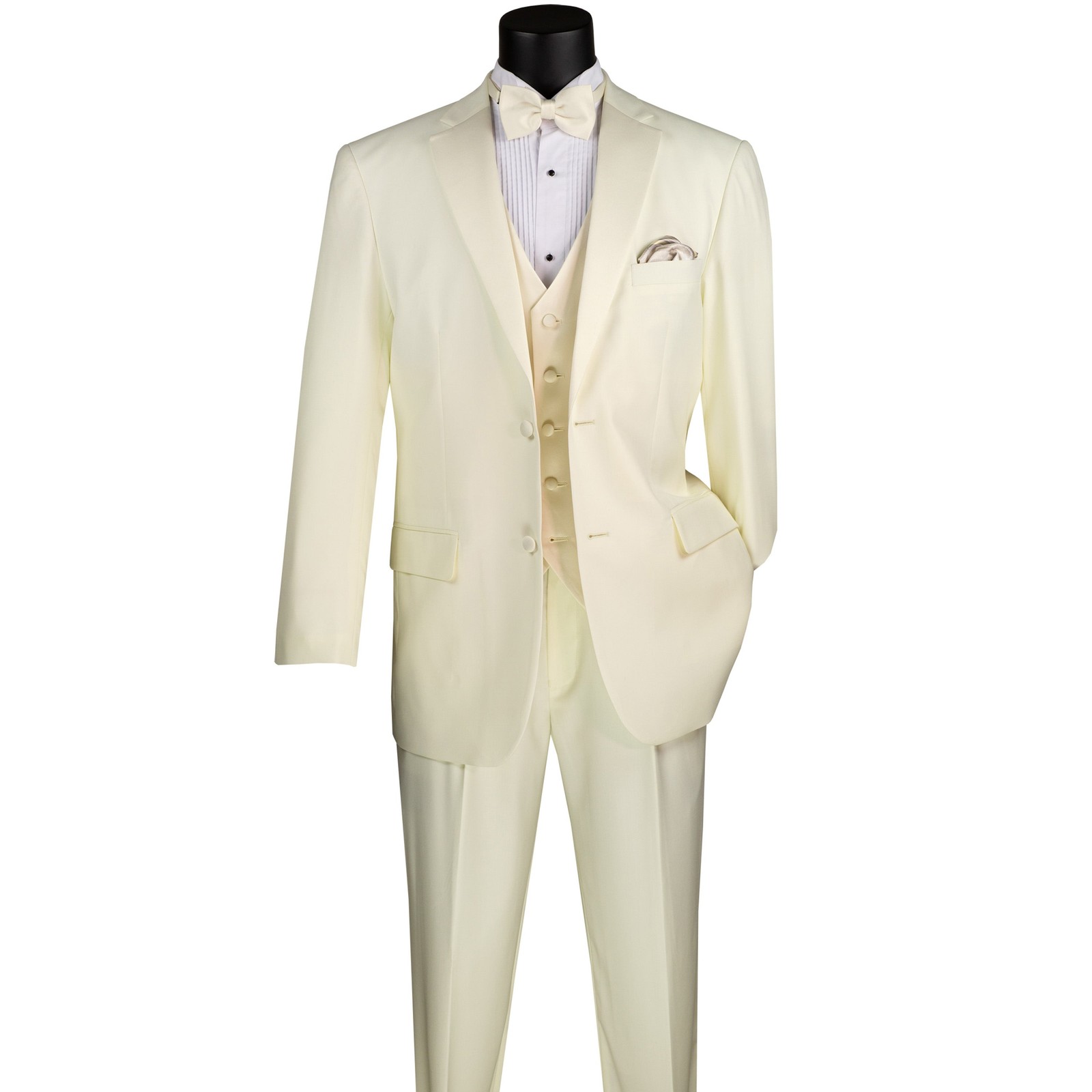 BIG TALL Men's Ivory 4pc Tuxedo w/ Sateen Lapel, Trim, Adj Waist Bow Tie NWT