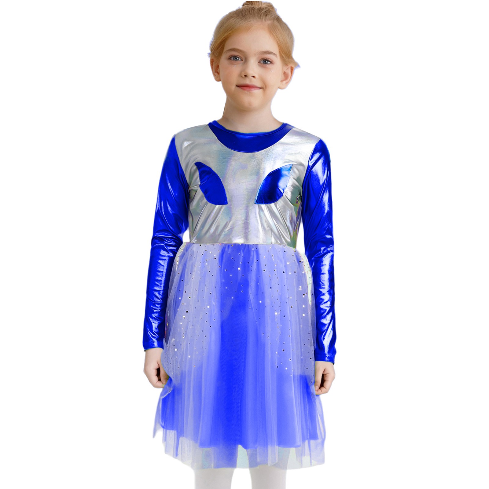 как выглядит Kids Girls Shiny Sequins Christmas Dance Dress Sleeveless Ballet Tutu Dancewear фото