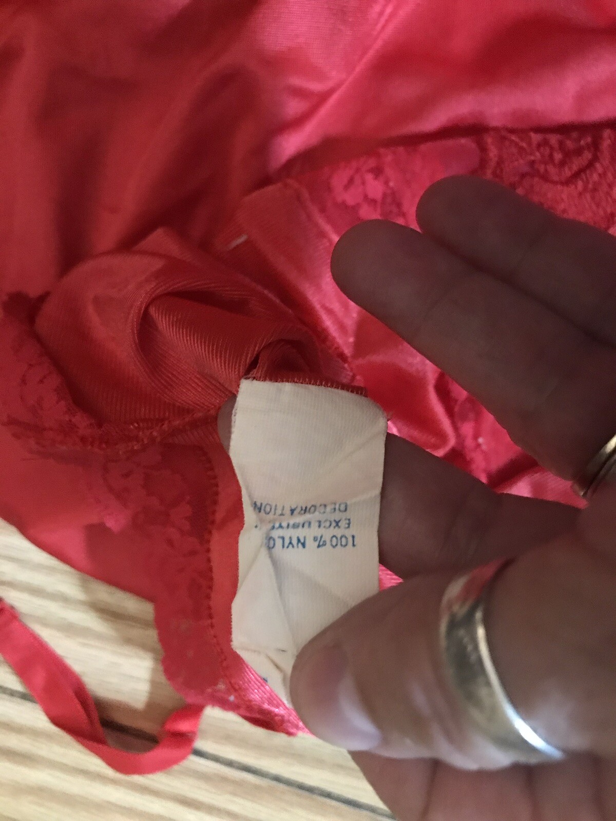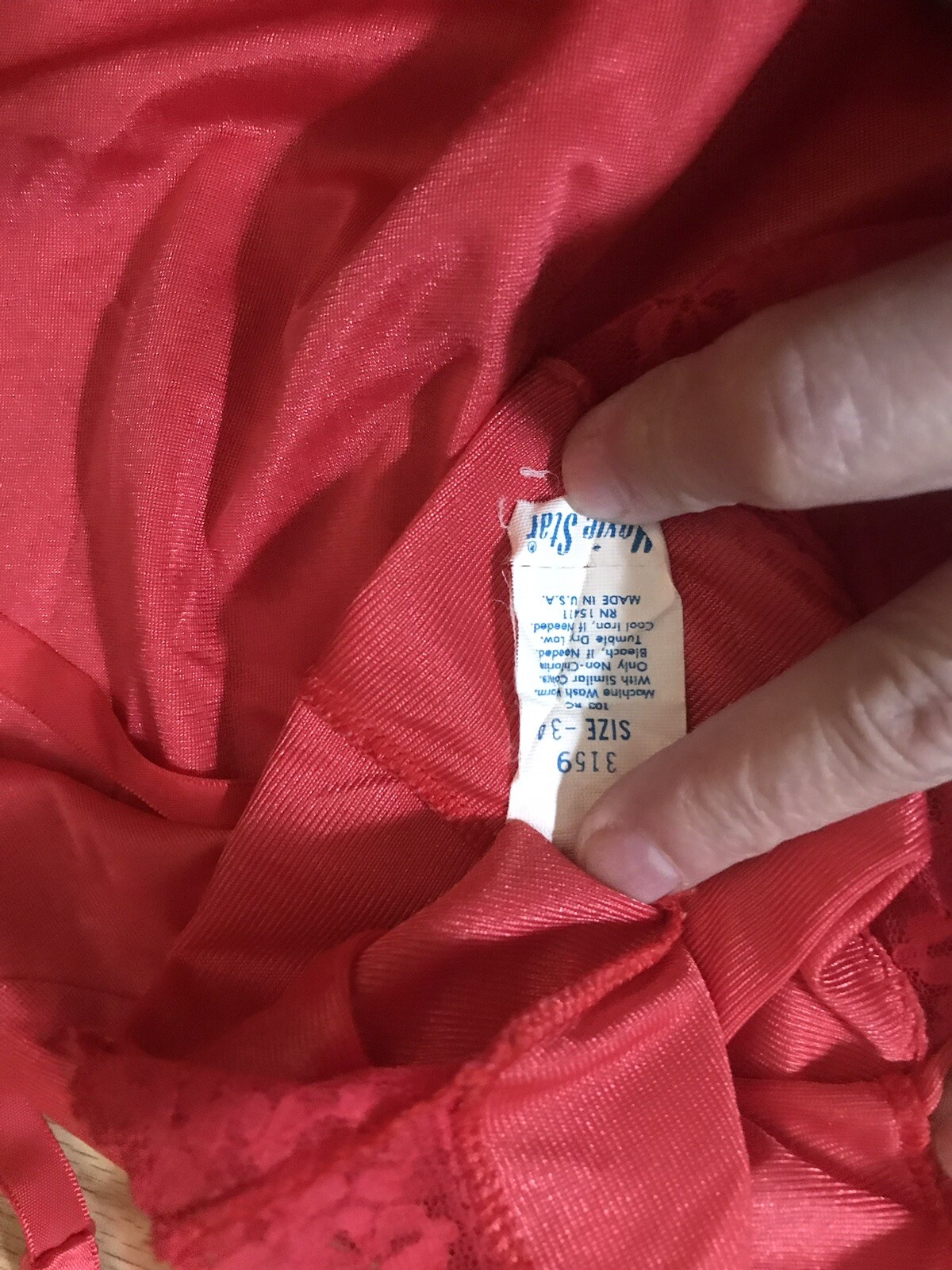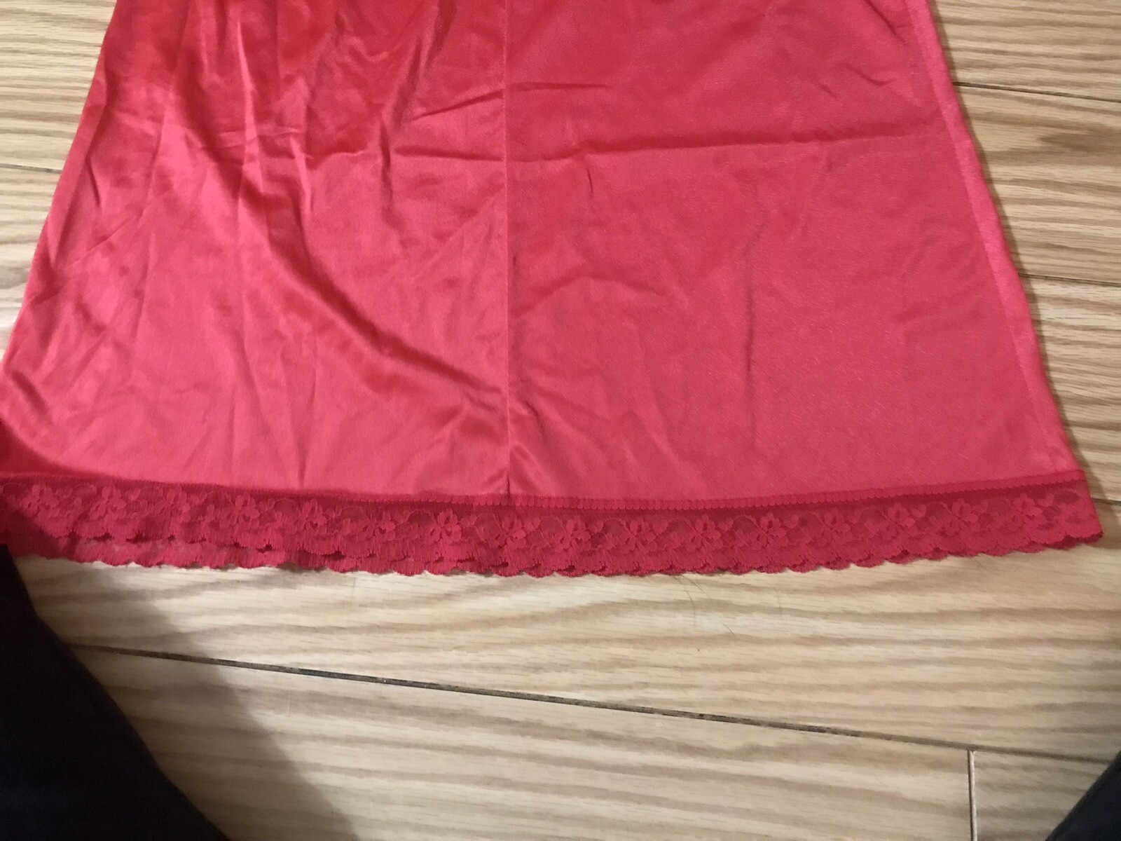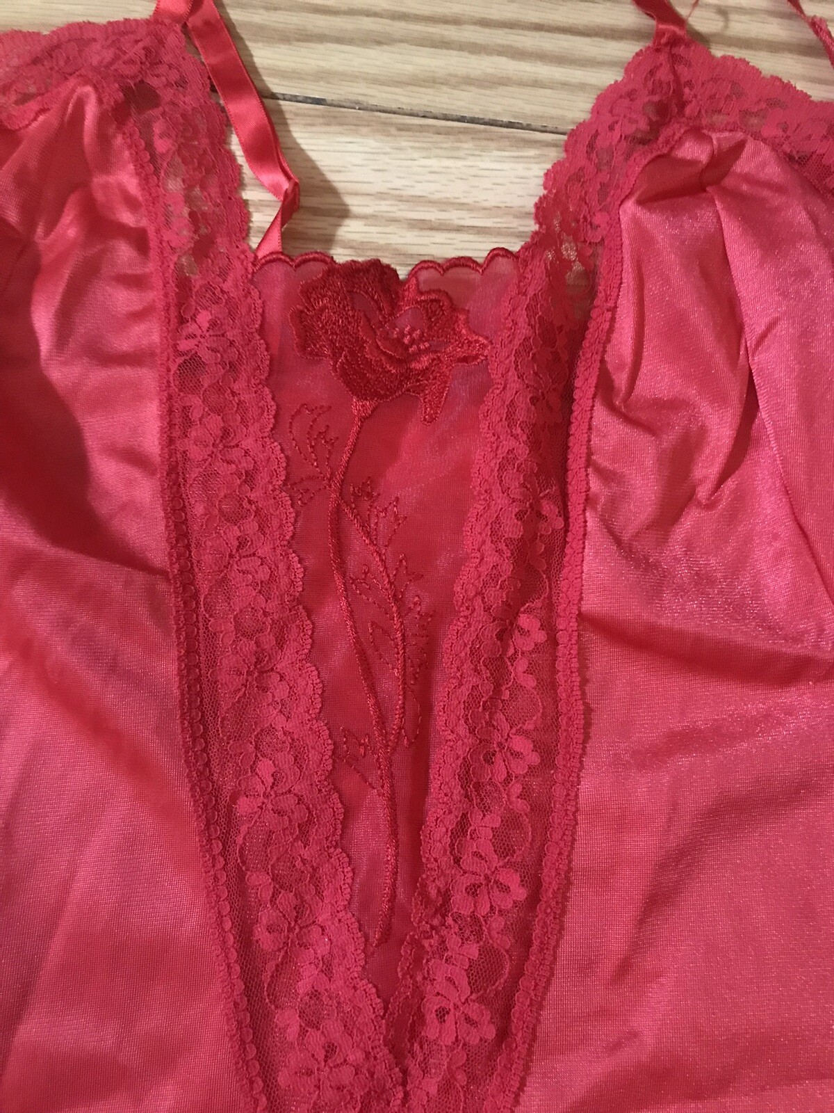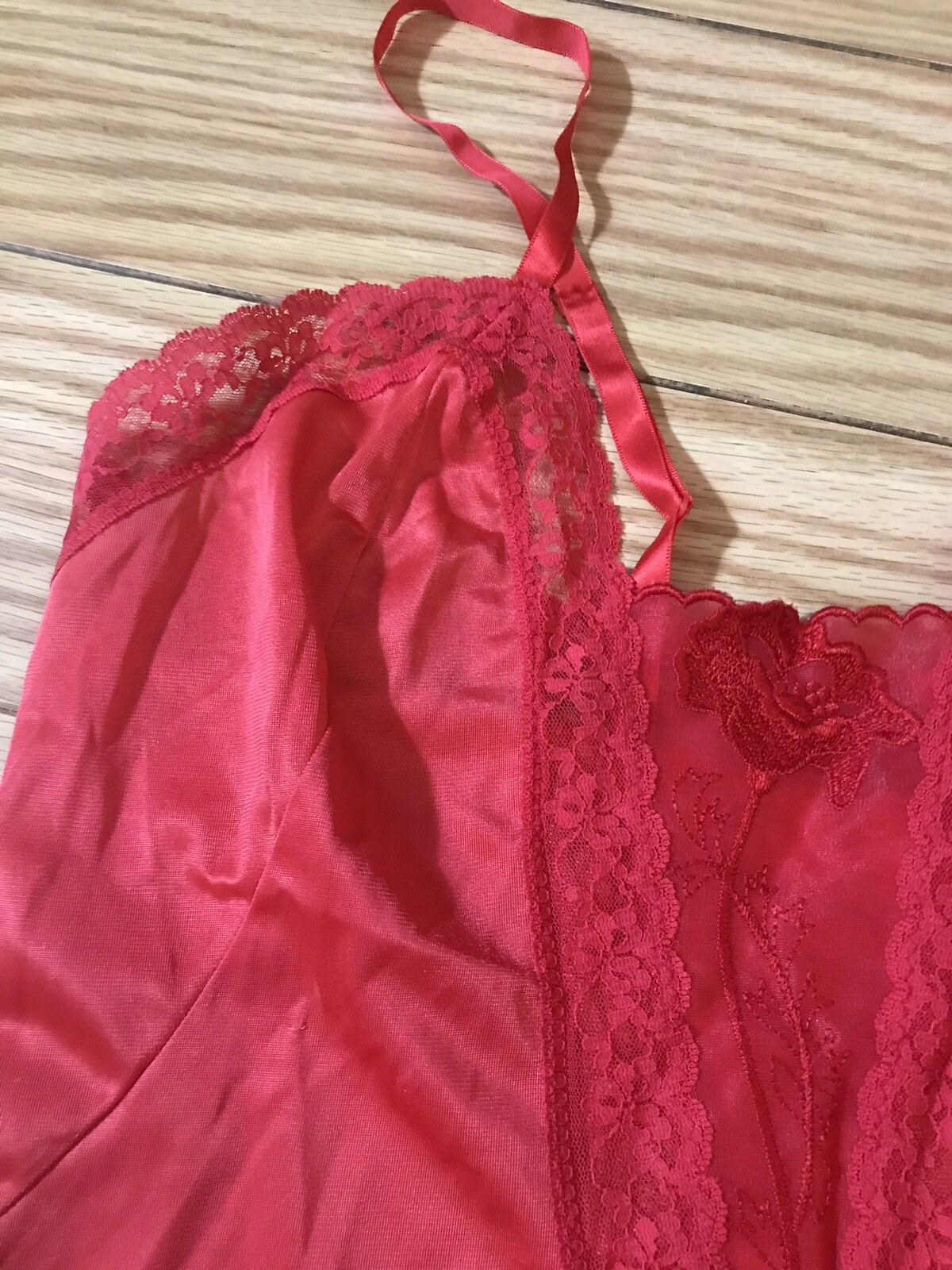 как выглядит Vintage Movie Star 60s Red Full Slip Nylon Lace Rose Dress USA SZ 34 3159 фото