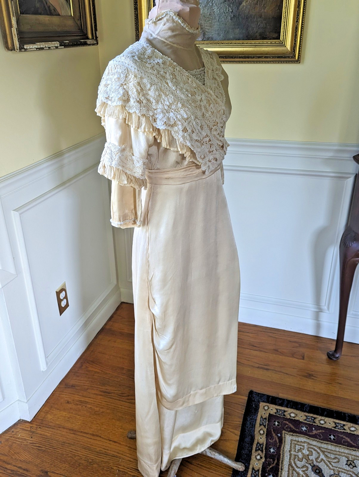 как выглядит Antique 1900s Edwardian Bridal Evening Dress Bobbin Tape Lace Beads Faux Pearls фото