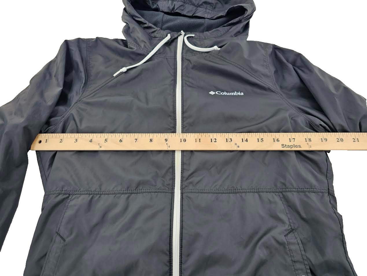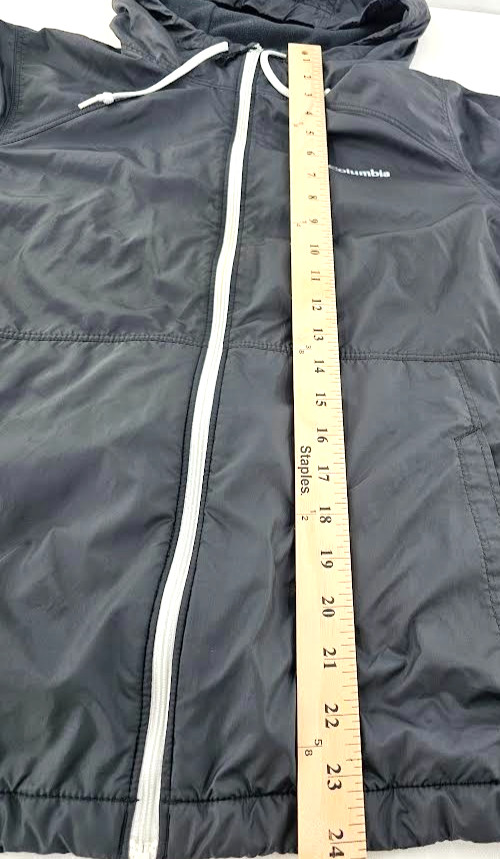как выглядит Columbia Windbreaker Small Black Full Zip Lined Lightweight Hooded Pockets фото