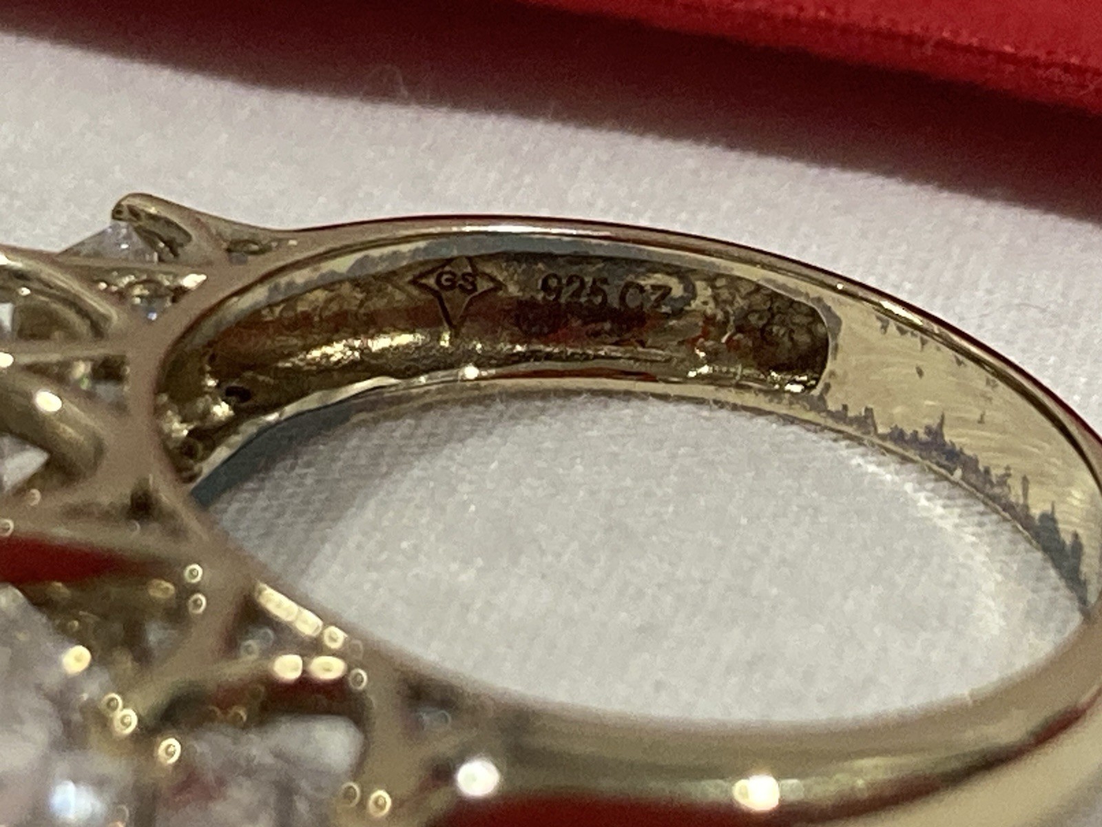 GS 925 China Sterling Silver Gold Vermeil 5 Stone CZ Cocktail Band Ring SIZE 7