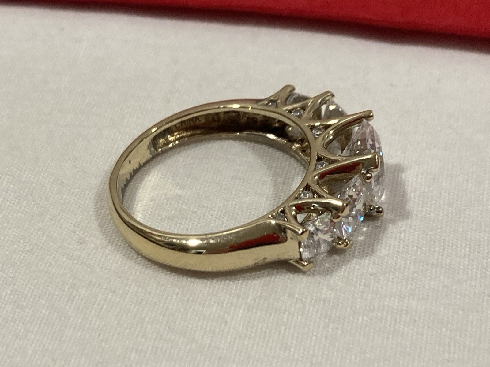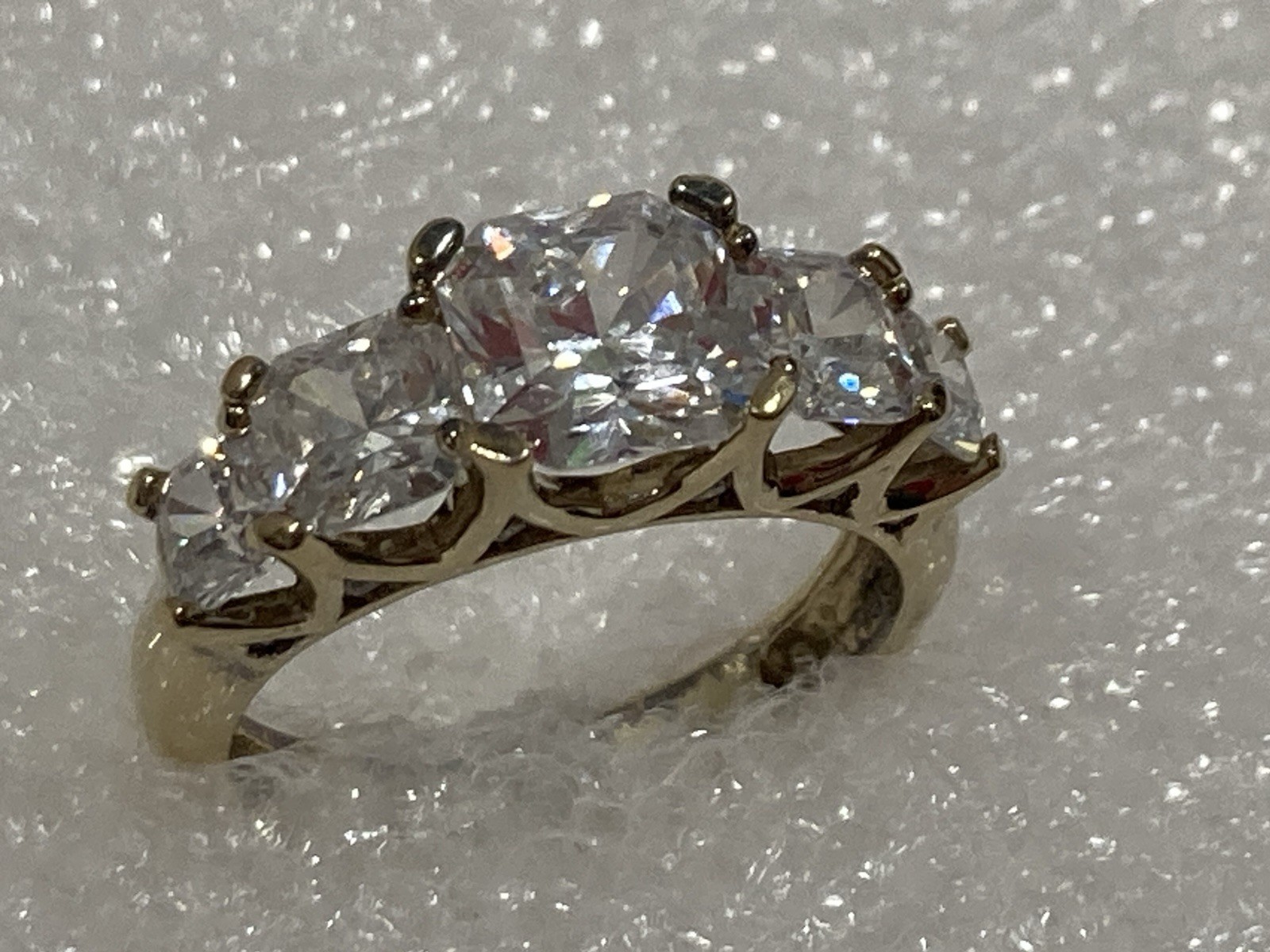 как выглядит GS 925 China Sterling Silver Gold Vermeil 5 Stone CZ Cocktail Band Ring SIZE 7 фото