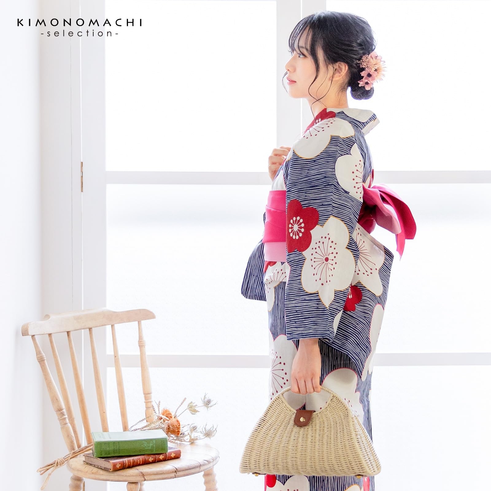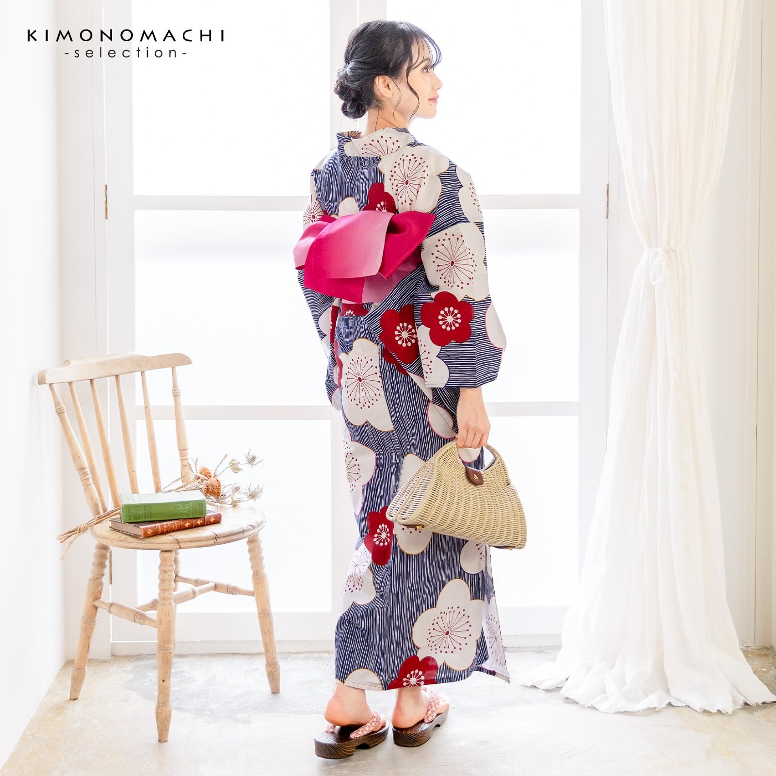 Japanese summer kimono Yukata Large plum blossoms Yukata and obi set Women s