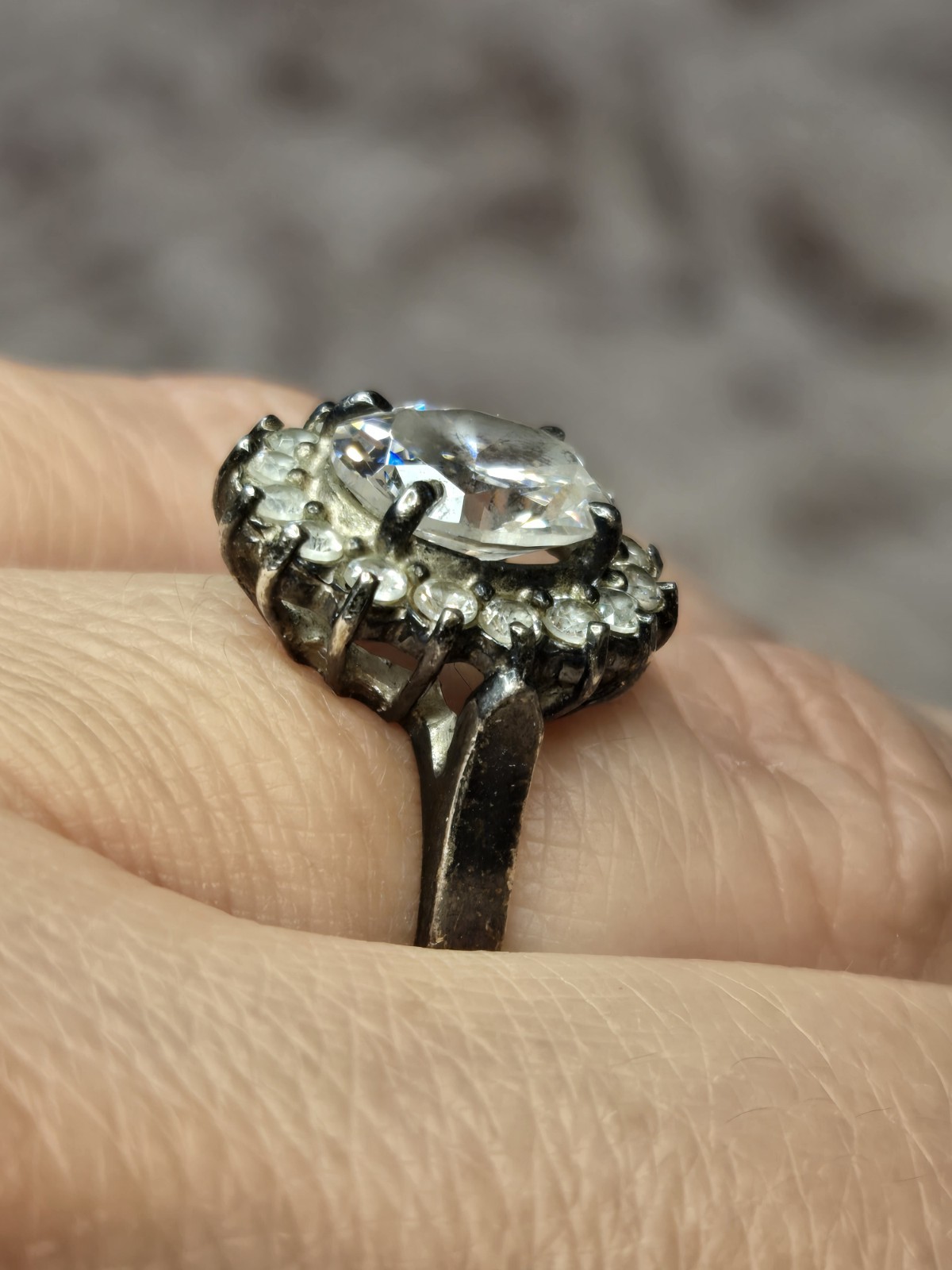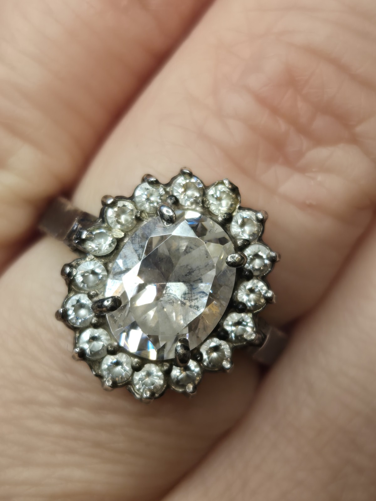 как выглядит Vintage Clear Crystal Halo Ring Size 6 Silver 925 фото