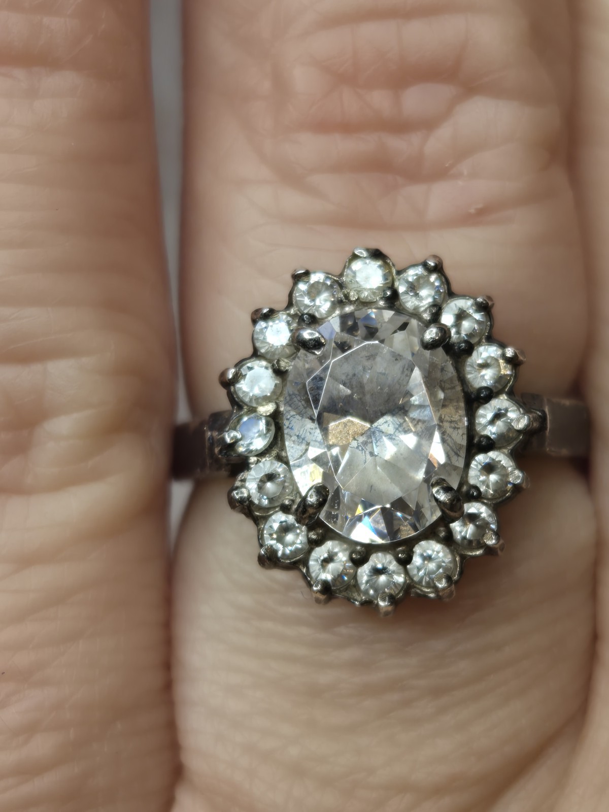 Vintage Clear Crystal Halo Ring Size 6 Silver 925