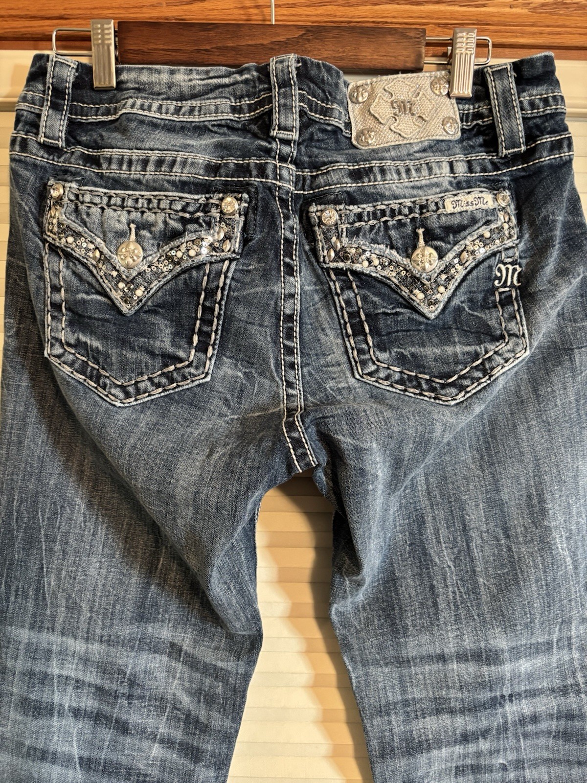 Miss Me Jeans Women's Sz 30 Mid Rise Easy Crop Bling Embellished Capri Distress