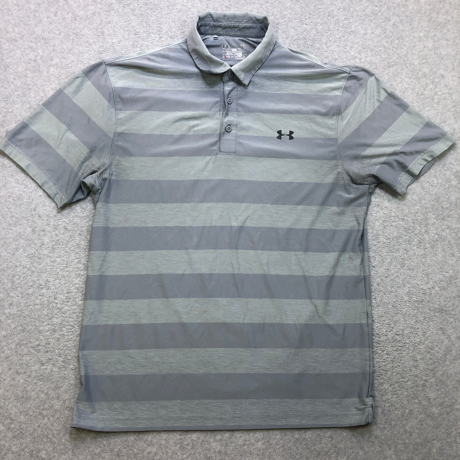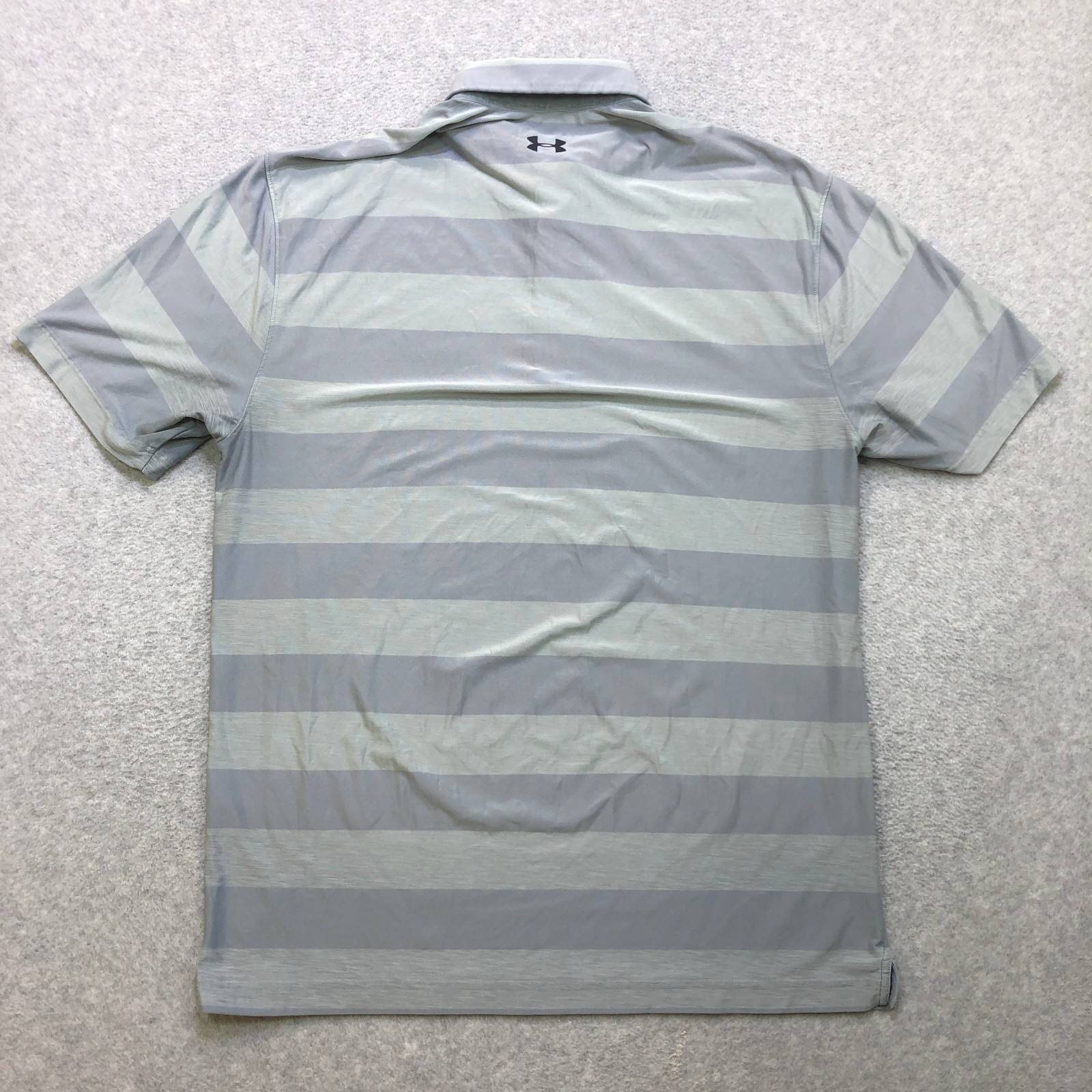 Under Armour Polo Shirt Mens Large Grey Striped Golf Performance Heatgear Logo